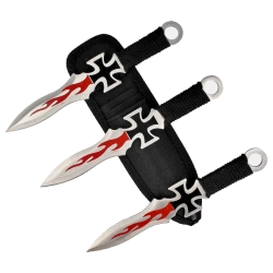 Martinez Albainox Cross Throwing Knives Set 3 pcs, Black Cord, Satin 3Cr13MoV (31884)