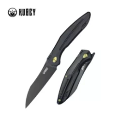 Kubey Barracuda Knife Black Titanium, Blackwashed M390 by Parsons Bladeworks (KB299B)