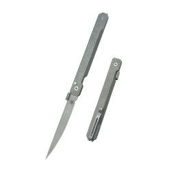 Nóż składany Kubey Prism Grey Titanium, Beadblasted 14C28N by Yuze Zhong (KB243A)