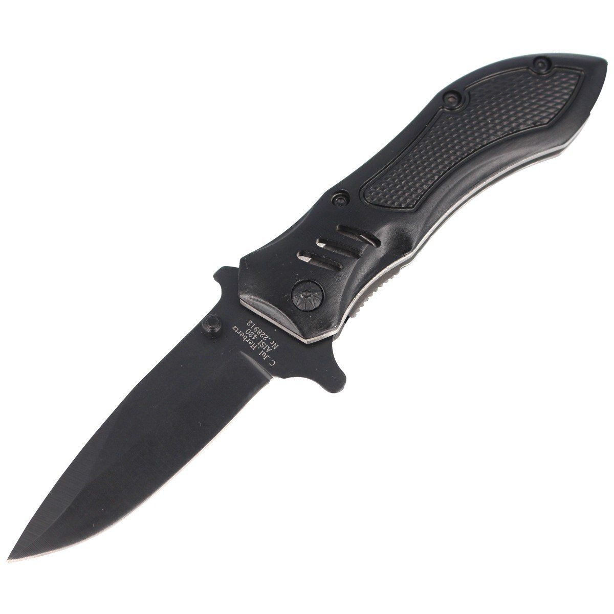 - Semi-automatic folding knife (with accelerator) with a solid construction of the German company Herbertz Solingen with aluminum claddings.