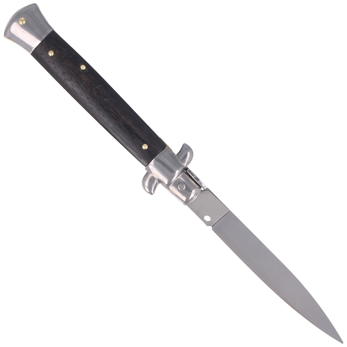 - Frank Beltrame Stiletto Ebony 23 cm - a classic spring knife handmade in Italy. Handle made of ebony wood, 420 stainless steel, traditional push-button mechanism. A combination of style, precision and craftsmanship.