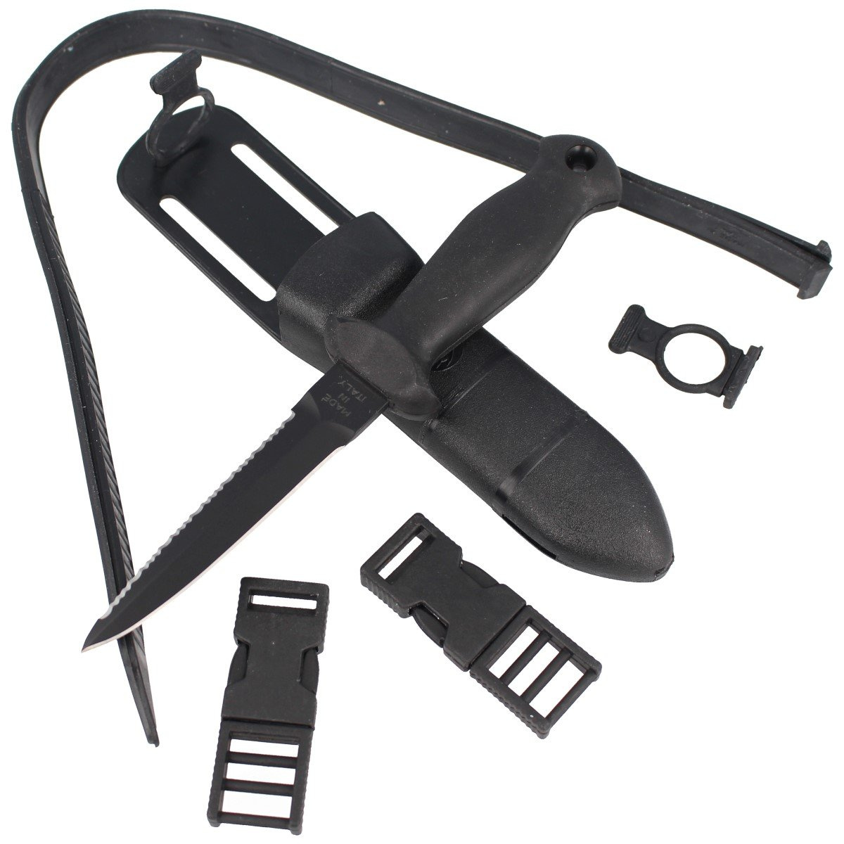SUB 11 D2 BLACK knife for a diver with a solid steel blade Stainless Steel about full tang construction made by the Italian MAC Coltellerie Company. An indispensable piece of equipment, it works well during diving trips and onshore activities.