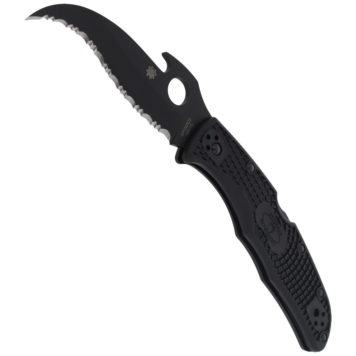 Spyder Edge - (Spyderco patent) a serrated blade usually has a few millimeter smooth blade on the tip side. Spyder blade consists alternately of one large and two small teeth called two-step. This pattern increases the cutting edge length by up to 24% compared to the straight edge. Perfect for cutting, inflicting deep wounds, cutting hard materials, including bones.