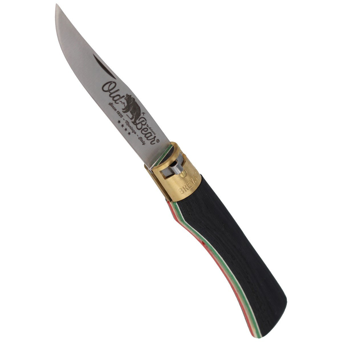 The line of luxury handmade folding knives. Classic Old Bear® are knives without a spring, which means that the blade is secured with a locking system containing a special ring that keeps the blade in an open or closed position (patented with the number 1187282, in 1985 by Todesco from Maniago). At the moment Old Bear knives are available in four sizes - S (17 cm - 6 3/4 "), M (19 cm - 7½"), L (21 cm - 8¼ ") and XL (23 cm - 9" ). The knife blade has the Old Bear® brand logo and the knife itself is placed in a fashionable old school and personalized cardboard packaging - an ideal gift for people living in harmony with nature.
