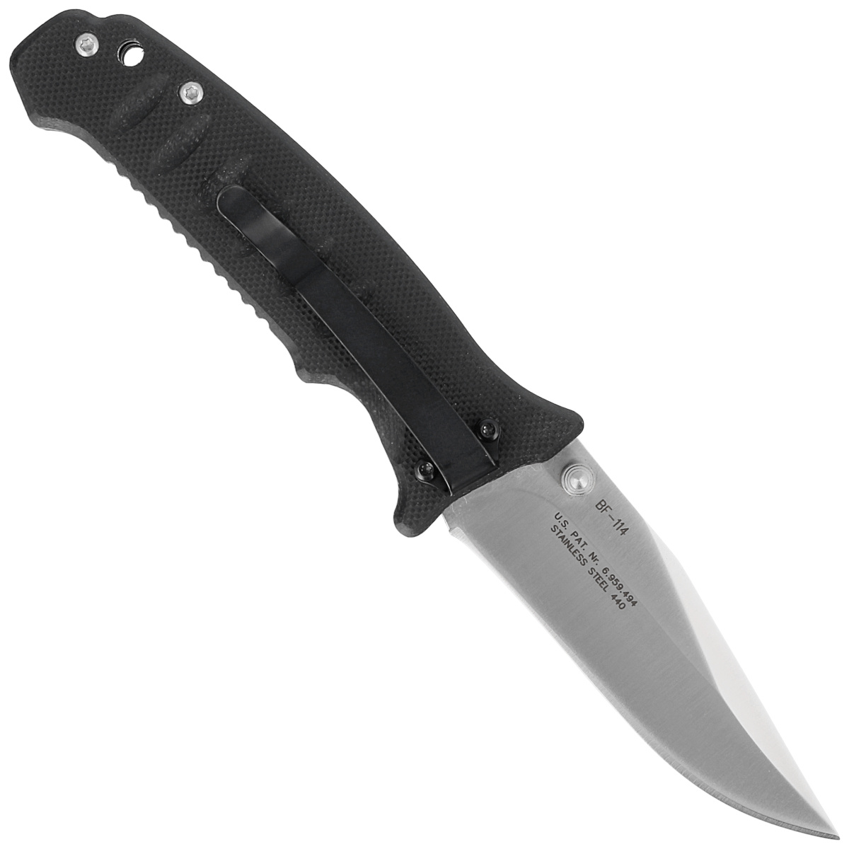 • BF-114 semi-automatic tactical knife by BlackFox. Equipped with the Assisted Opening System, it opens with a slight push of the head. Low weight, spring assisted opening, G10 handle, case and excellent price are the strong points of the folder