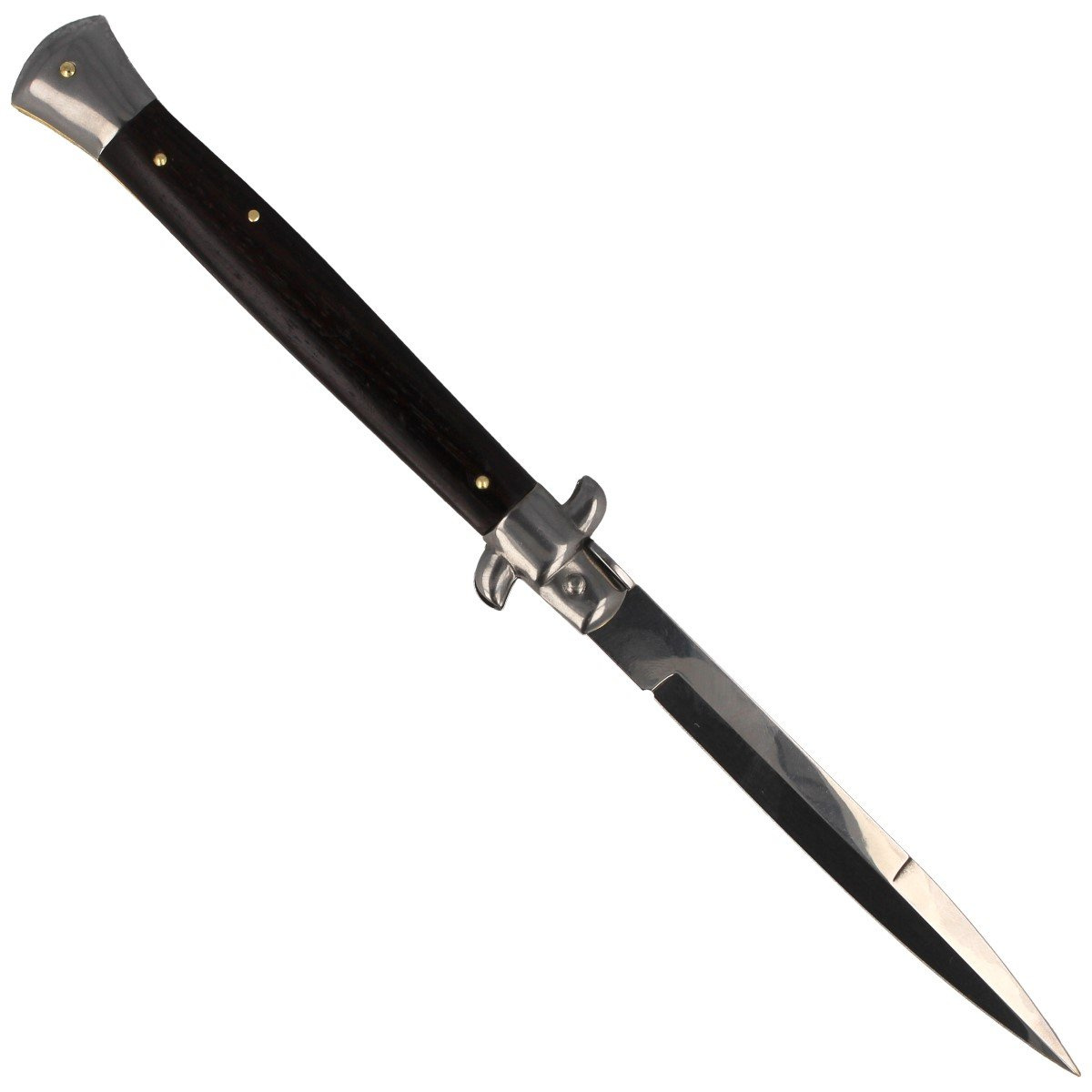Classic Italian Stiletto Bayonet Palisander 28 cm, a traditional Italian spring knife. Completely handmade according to the principles of Italian craftsmanship, Frank Beltrame Stiletto knives have become world famous for their extreme lightness and durability. Thanks to its characteristics, the Italian dagger is suitable for use in any environment, from hunting to camping. Solid, robust construction, a strong opening blade spring, is the hallmark of the classic Frank Beltrame Italian spring knives.