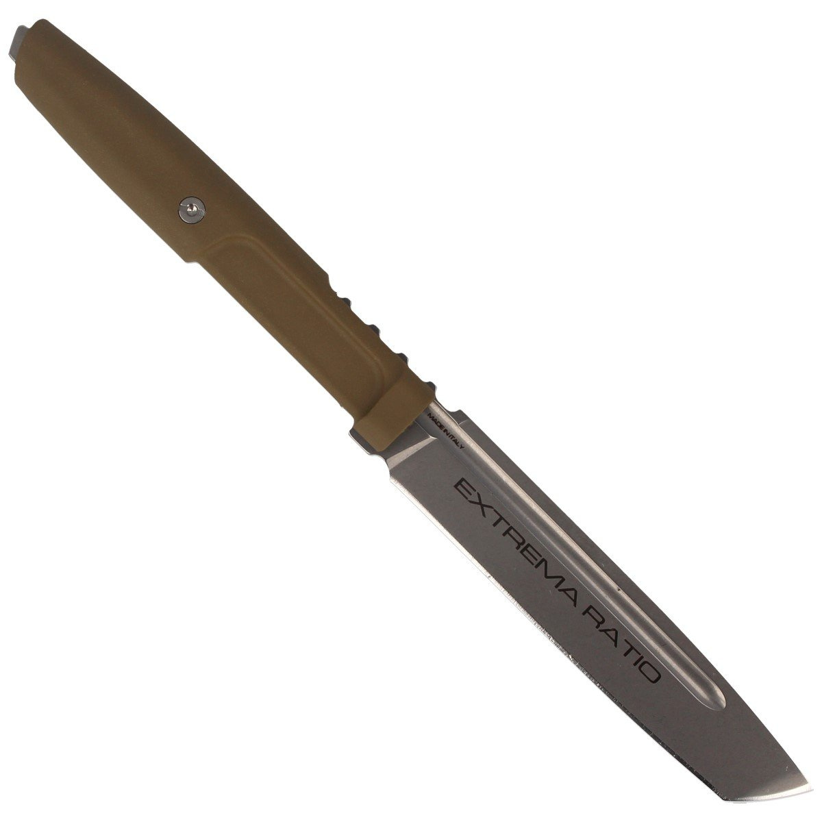 Mamba HCS (Hybrid Coyote Sage), slim, ultra-light 85 g, easy to use and versatile. Perfectly balanced tactical knife with full tang construction. In skillful hands incredibly fast and effective. The new generation Extrema Ratio compact back-up knife for professionals with the Aspis multifunctional sheath.