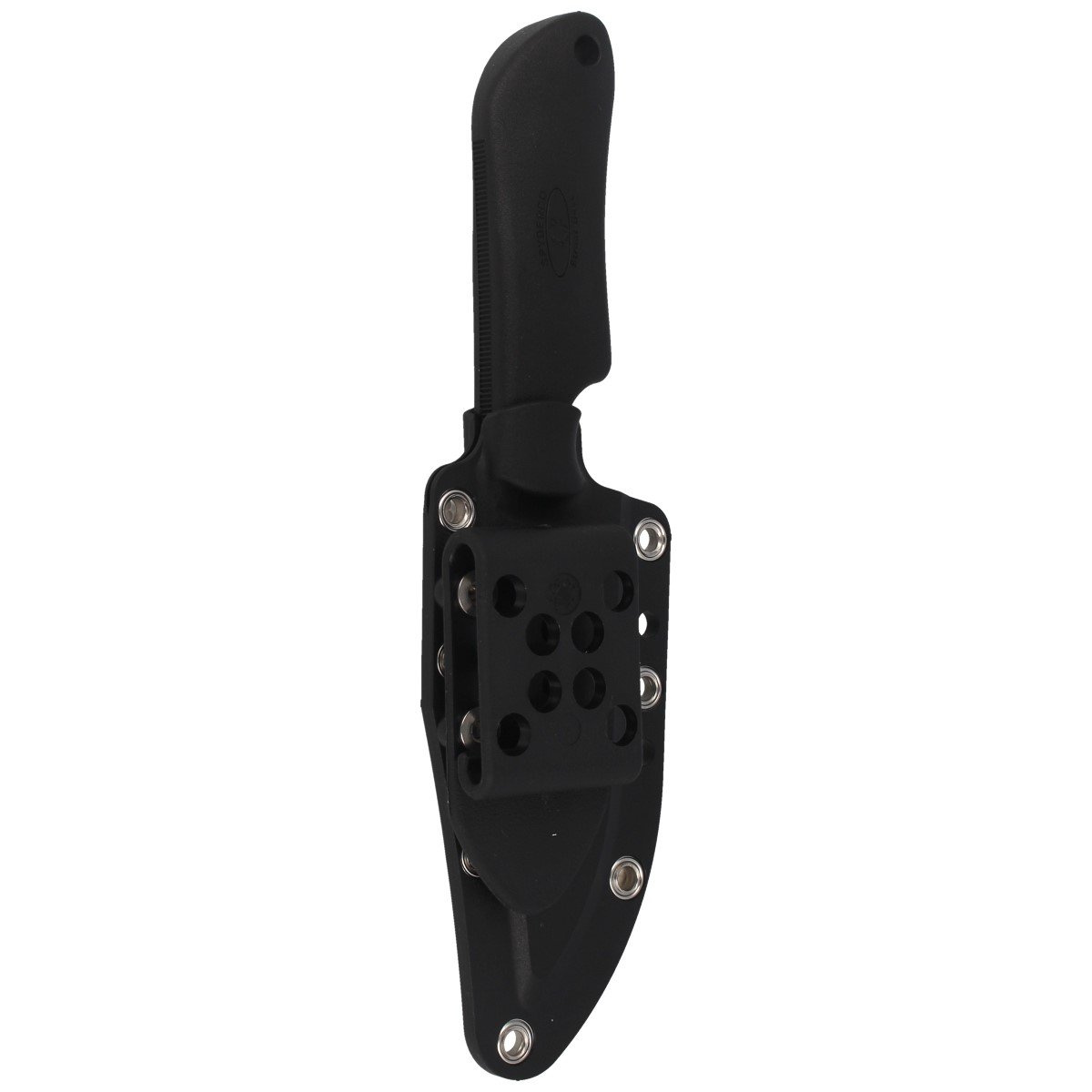 Street Beat FRN/Kraton Black Blade, a shorter version of the legendary Perrin Street Bowie Black Blade. The model retains the same performance qualities as the full-size version, the only difference being a lower weight of 88g. Designed by Fred Perrin, former soldier / commander of the legendary French Army Commando. National Tae Kwon Do master and one of the best instructors of close combat and self-defence in Europe. Knife with a fixed head, used successfully on survival hunting expeditions or for self-defence.