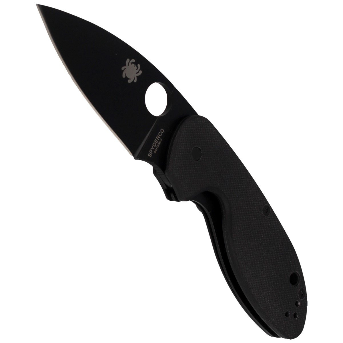 - Efficient Black G10, Black medium sized Spyderco folder. Fantastic design - exemplary ergonomics - wide profile of the blade - long cutting edge - attractive value for money! An ideal choice for people starting their adventure with Spyderco knives.
