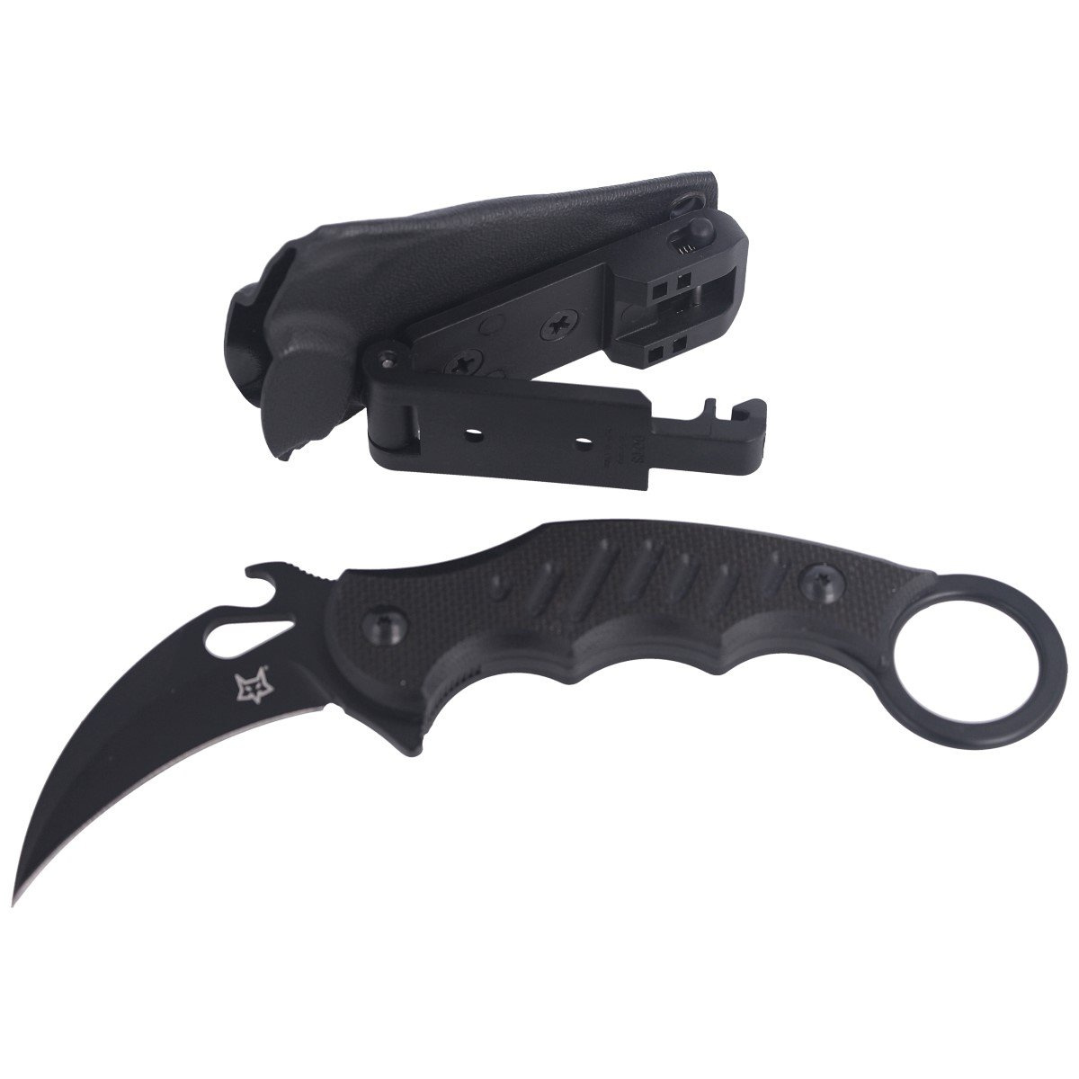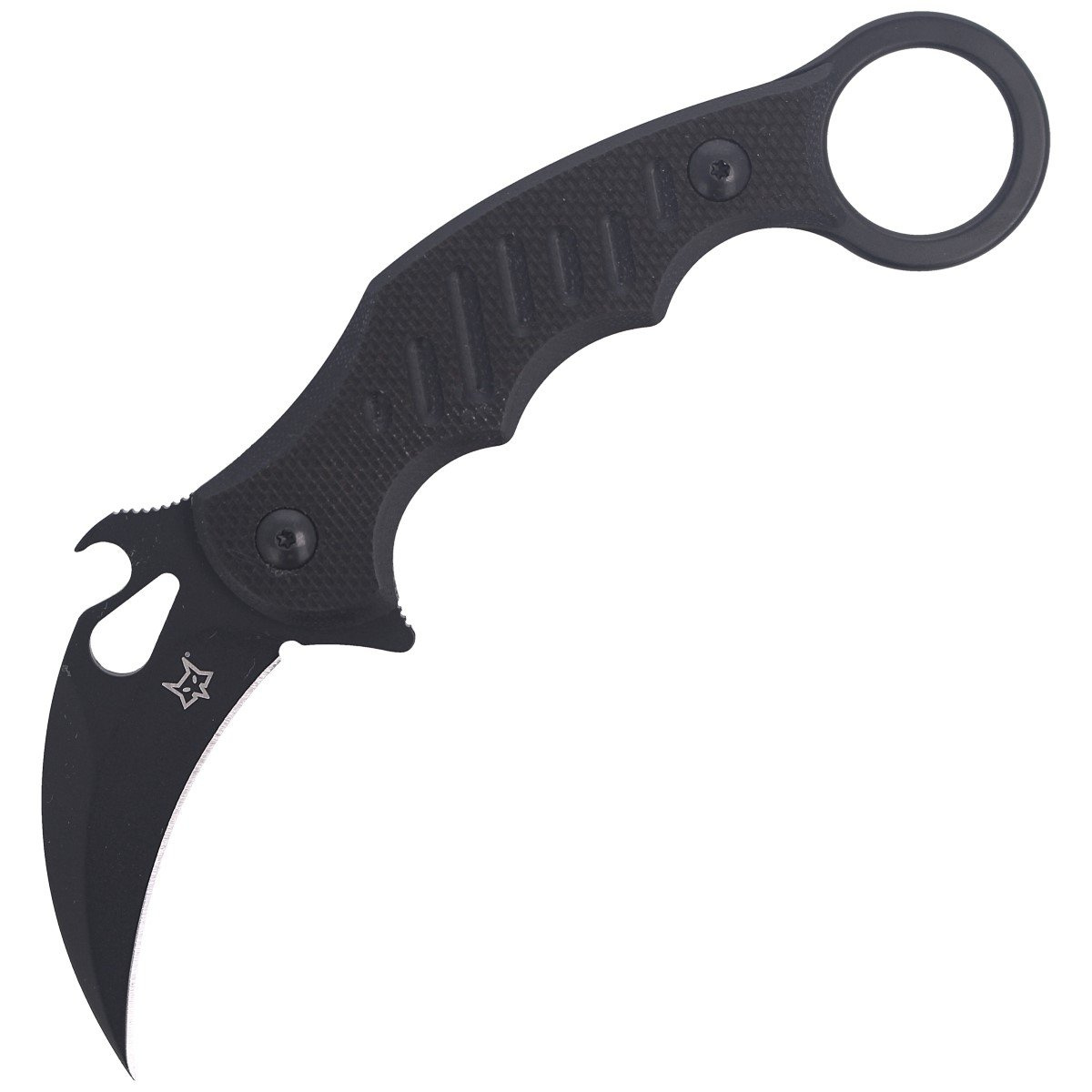• A modern karambit with incredible performance. The fixed blade version of the popular FX-599 folder shows how karambit knives have evolved. Hawkbill blade in N690Co steel with Idroglider Black coating, enlarged Back Ring, compact scabbard