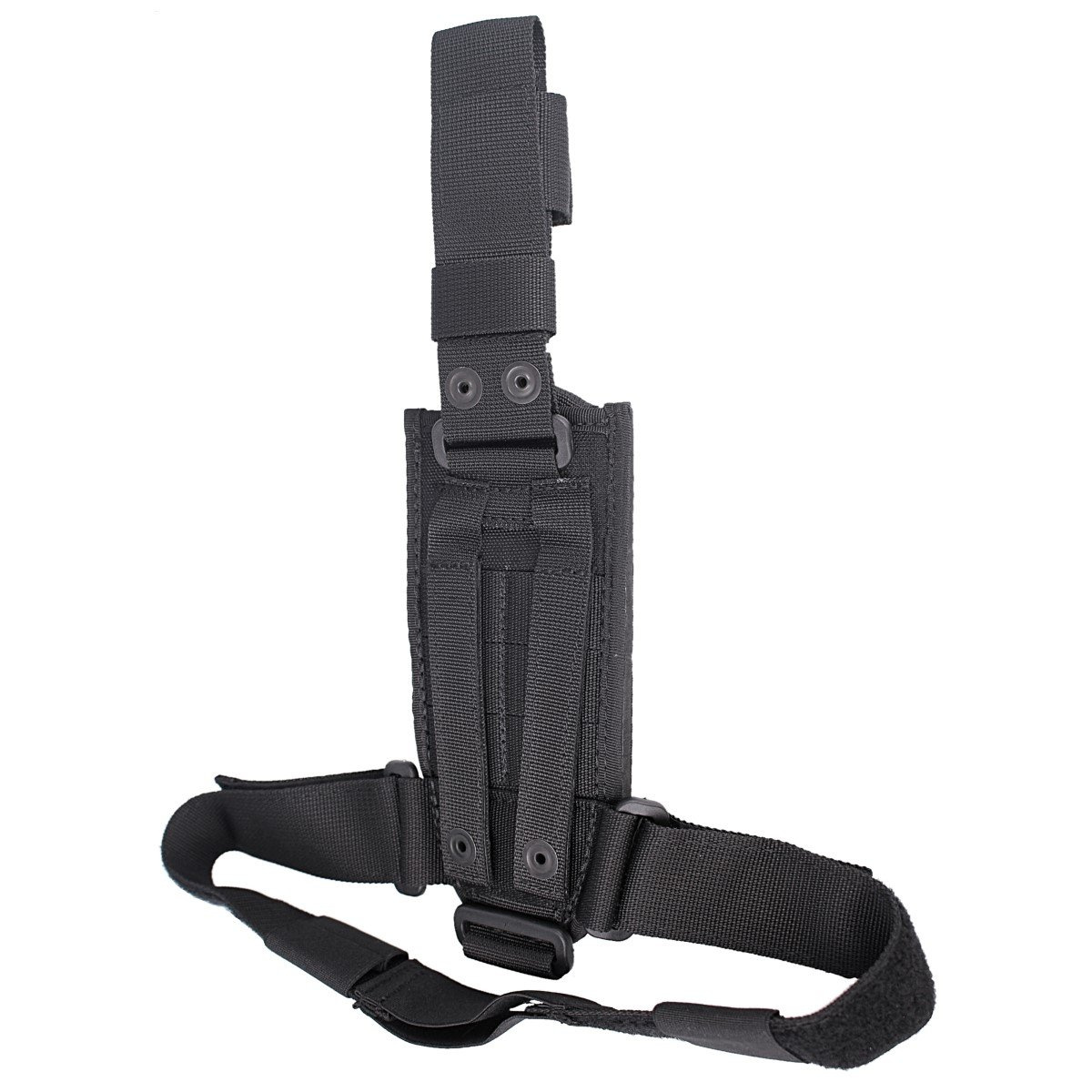 Sheath - black abrasion resistant waterproof nylon thigh-high sheath with M.O.L.L.E. system webbing attachment. (Modular Lightweight Load-carrying Equipment). Holster allows you to carry the knife on your belt or vest compatible with MOLLE system. Lower part of the scabbard with Velcro strap for attachment to the thigh.