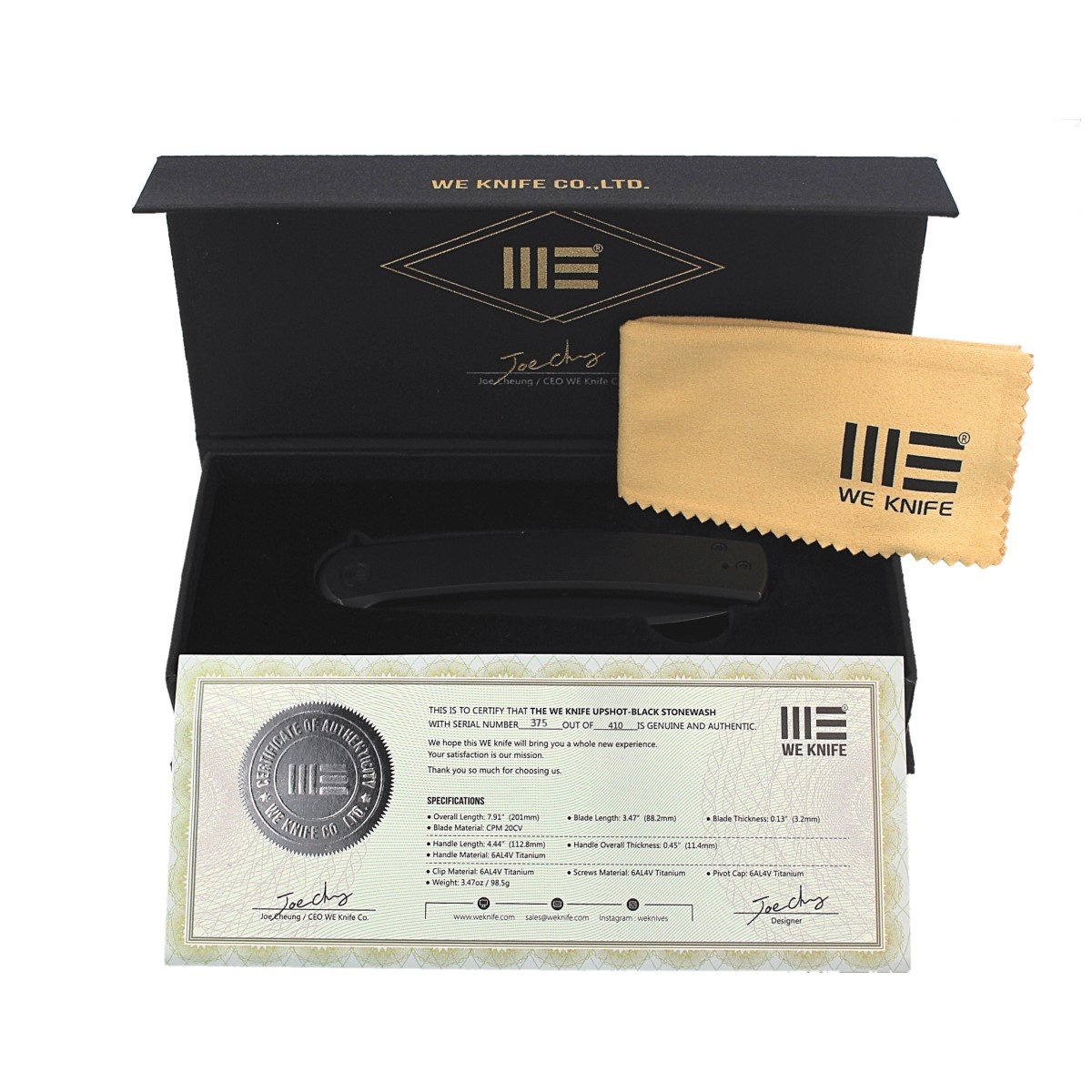 WE Knife Upshot LE No 375/410 Black Ti, Black Stonewashed CPM 20CV (2102B)