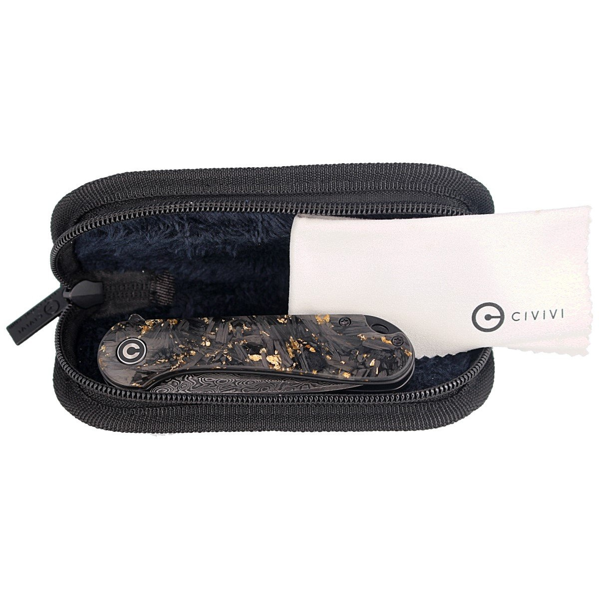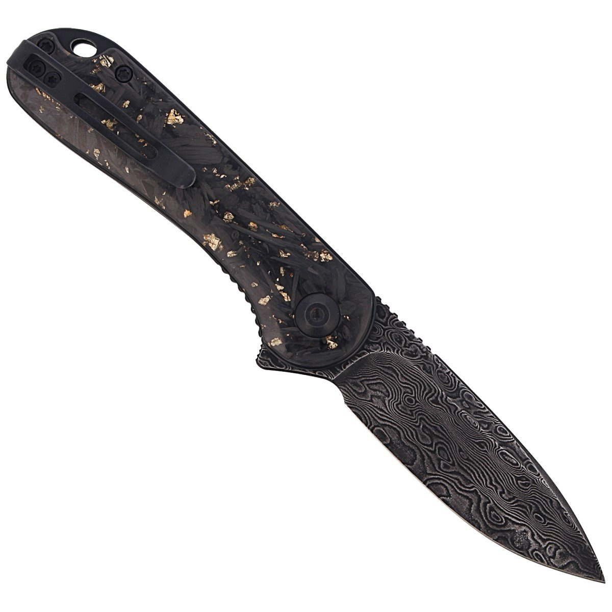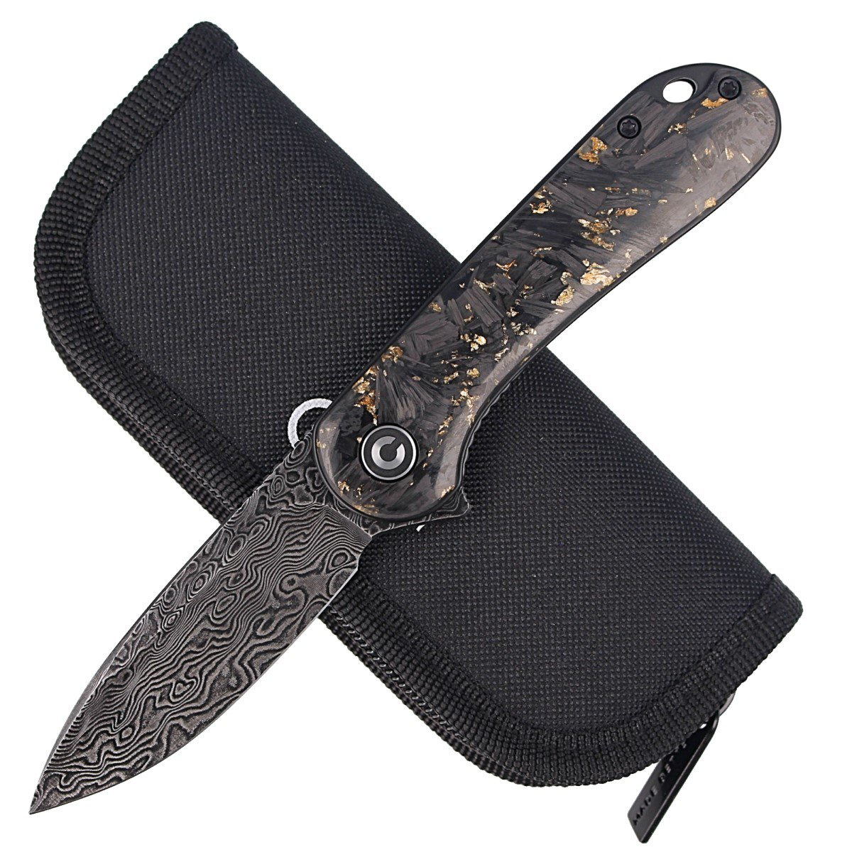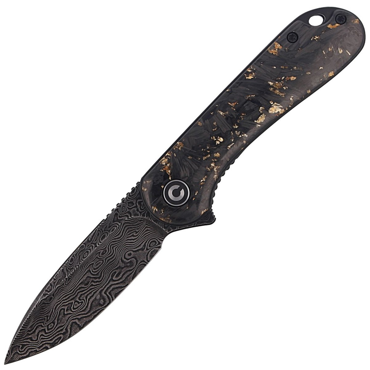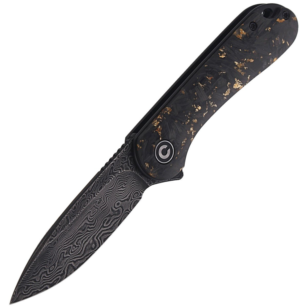 CIVIVI Knife Elementum Flipper Shredded Carbon Fiber / Golden Shred, Black Damascus (C907C-DS1)