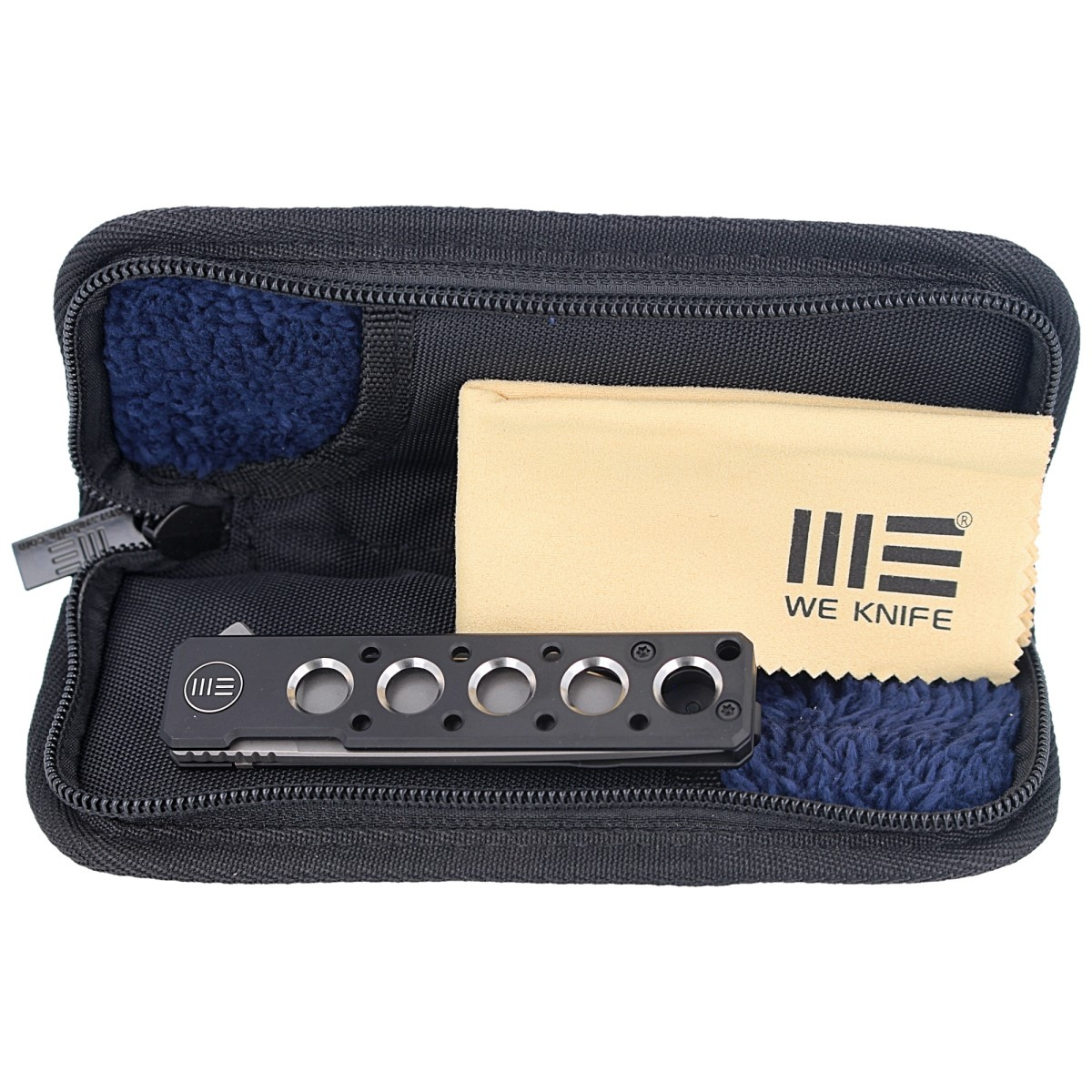 Miscreant 3.0 Black Titanium, Gray Stonewashed was designed by Brad Zinker, a member of The Knifemakers Guild, who specializes in handmade custom knives. Brad is known for his knife designs with carefully finished "skeletonized" liners equipped with numerous holes. This makes the design very light, and the edges of the holes will also provide a good grip. Despite the angular design, the WeKnife is extremely ergonomic to use and loved by users for its ultra-precise clean form.