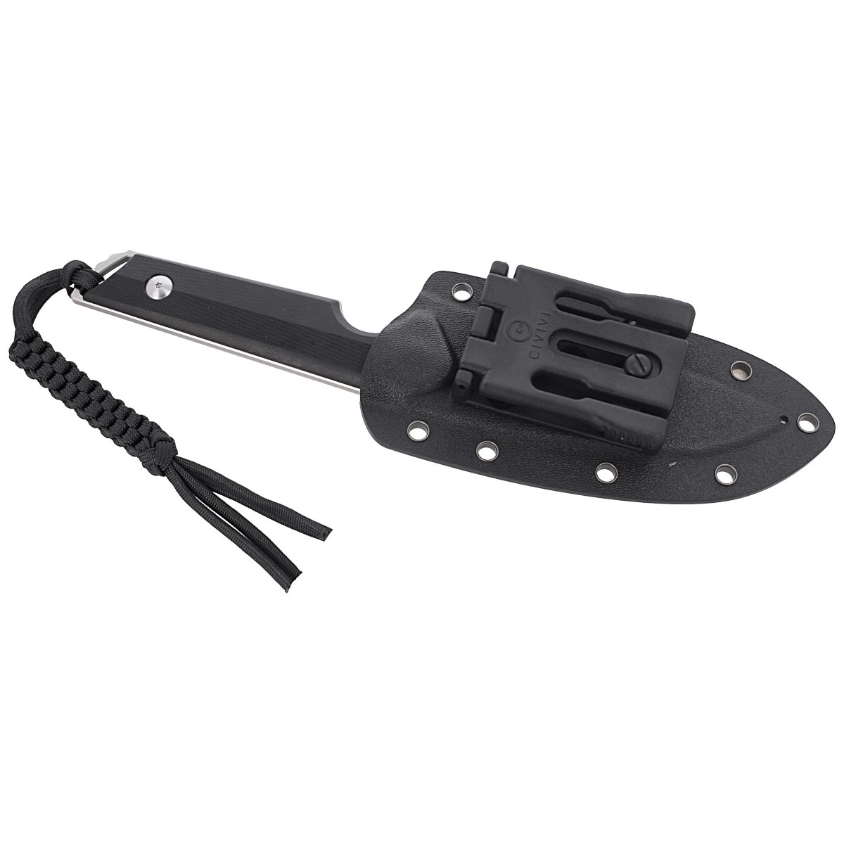 Handle - non-slip textured facings made of G10 composite in black, screwed to the tang with screws. Simple, solid construction guarantees many years of use. In set we get black kydex sheath, which thanks to Tek-Lok clip can be mounted to belt or equipment. The protruding part of the tango at the back of the handle has a lanyard hole for attaching a safety or decorative cord (included).