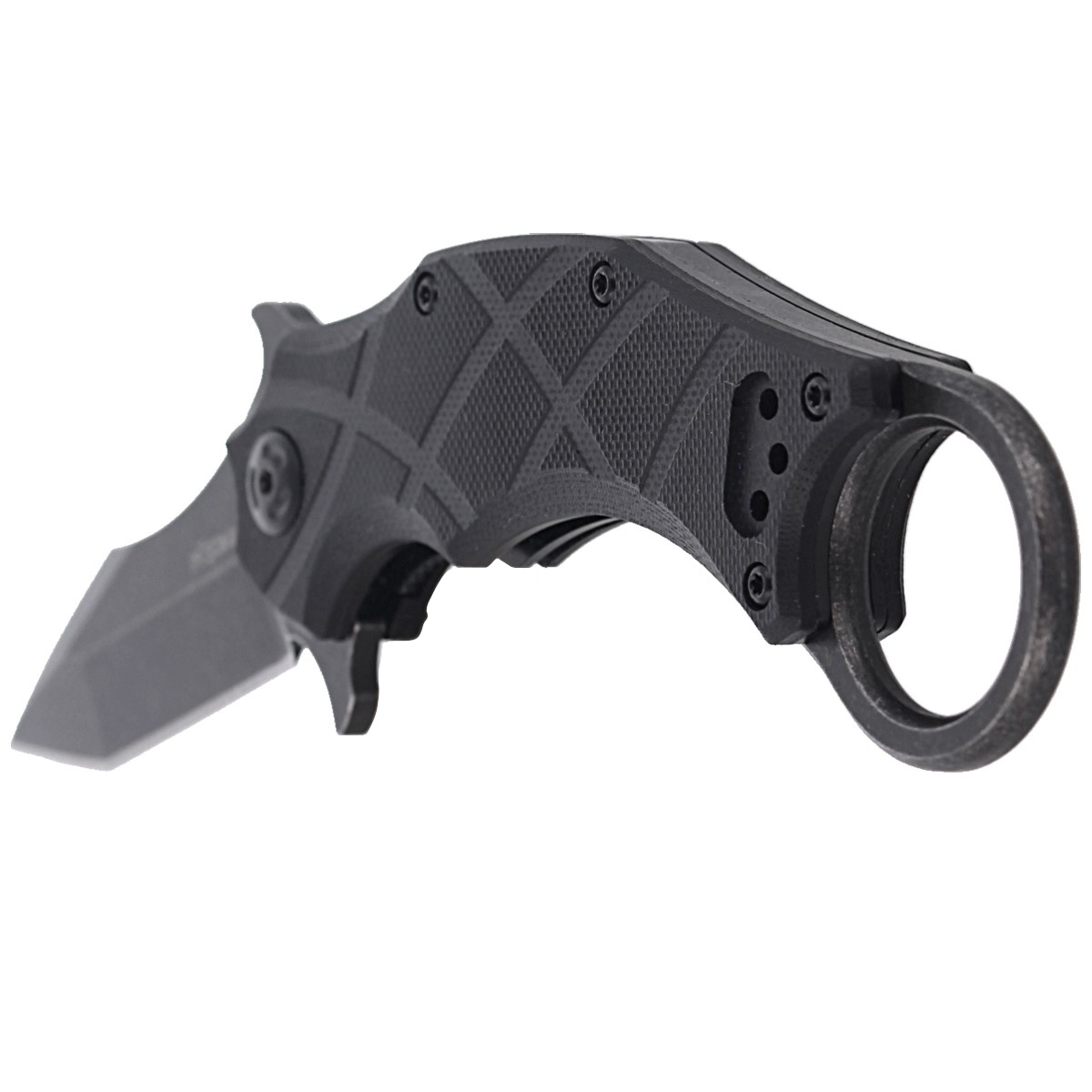 Karambit - a type of knife that originated in Indonesia, with roots in Malaysia and the Philippines. It is characterized by a finger ring and sickle shape blade, which is characterized by great cutting efficiency - imitates the way of tearing by an eagle claw or tiger claw. Used as a work knife and for defense if necessary.