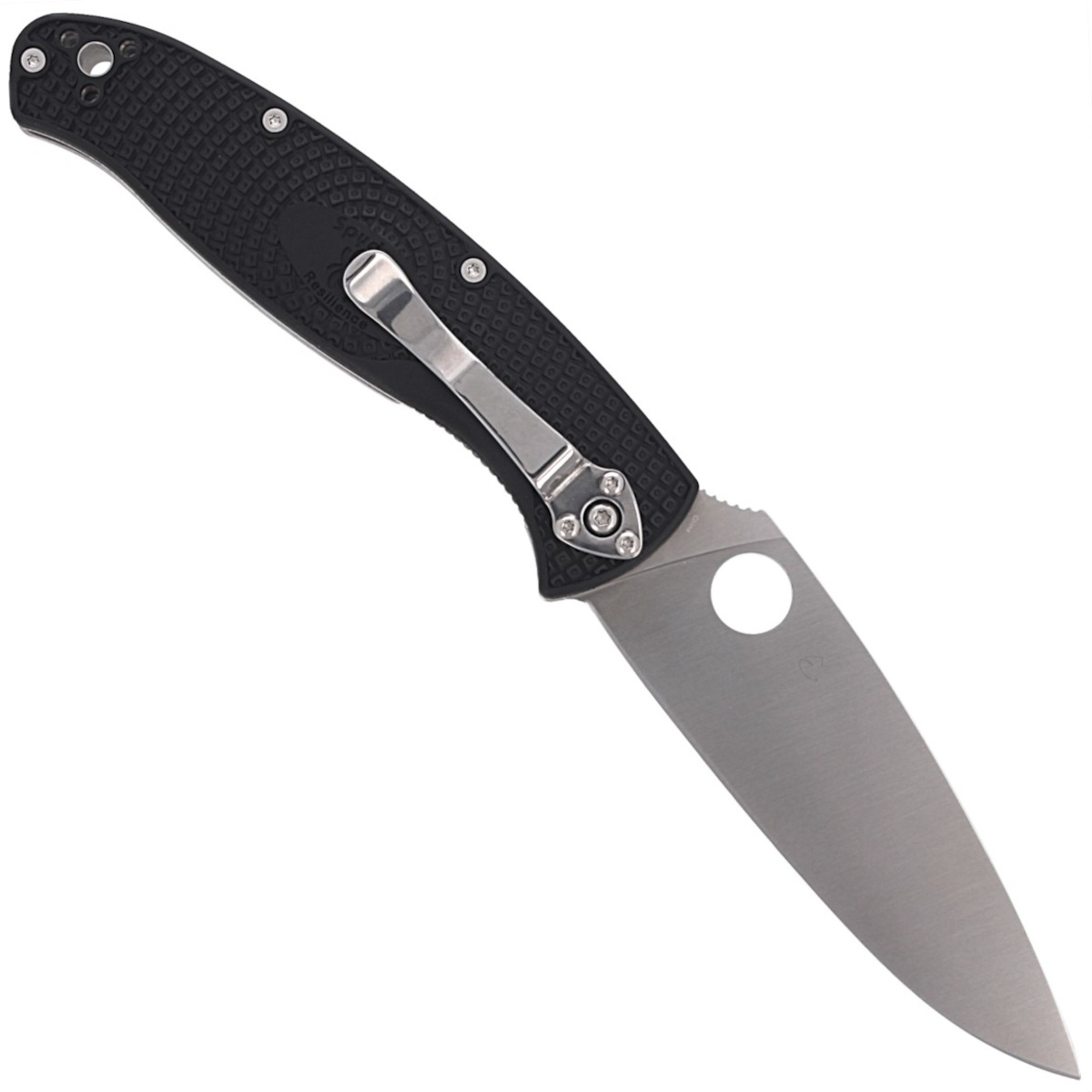 Blade - Drop Point shape and thickness of 3.1 mm provides excellent cutting edge geometry with low friction. The cutting edge is Full Flat Grind. Plain type blade extends throughout the entire length of the blade allowing for powerful cuts with the heel of the blade. The enlarged 14 mm SpyderHole (Spyderco patent) makes it easy to open the blade, even when gloved. Notched part of the back of the blade, ramp (spine jimping) positions the thumb, gives solid support, facilitates efficient operation of the knife.