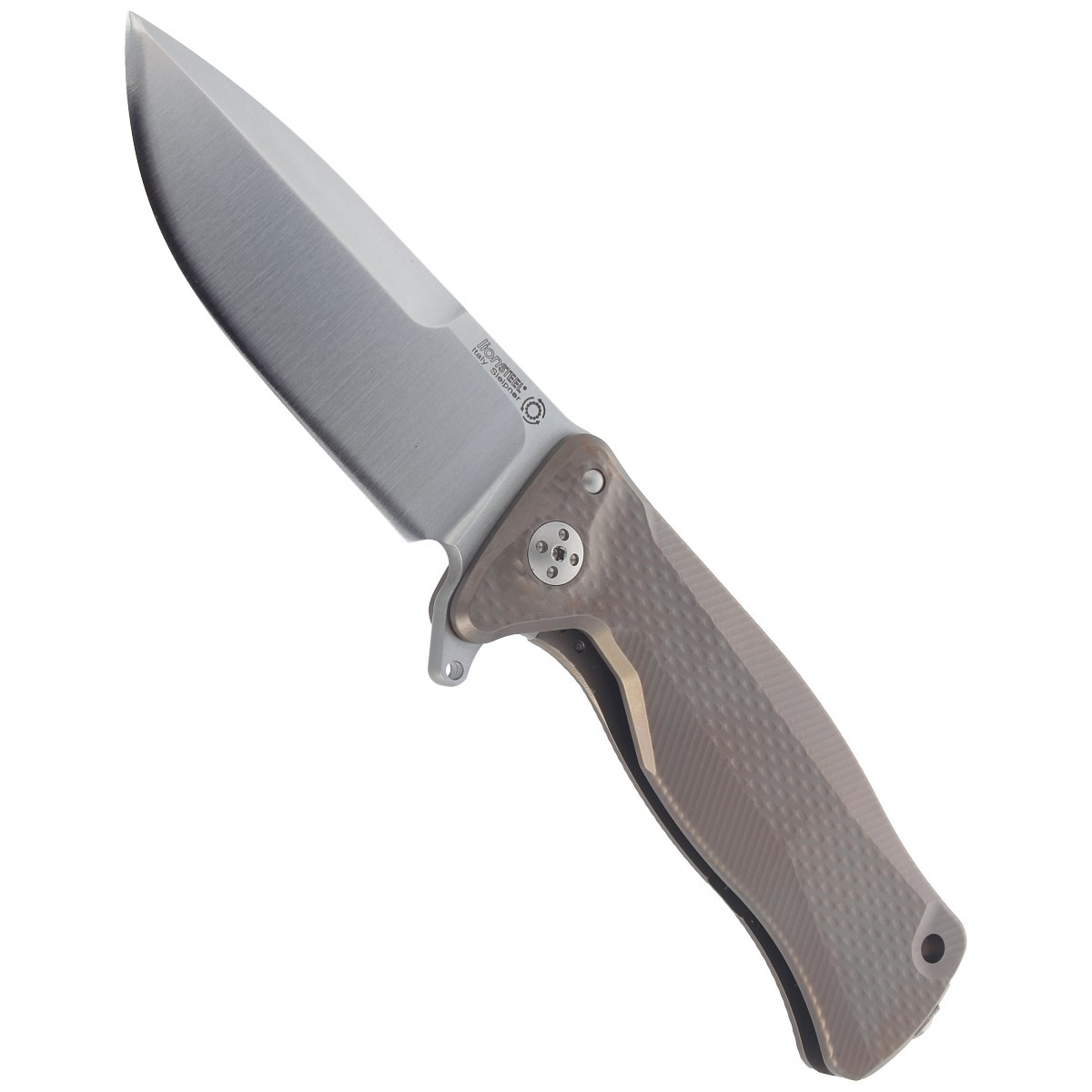 - SR11 Brown Titanium, Satin Finish a folder from Italian manufactory LionSteel with exclusive Solid technology. Sleipner, Swedish high alloy universal tool steel with high wear and chipping resistance. Frame-Lock and RotoLock blade locks.