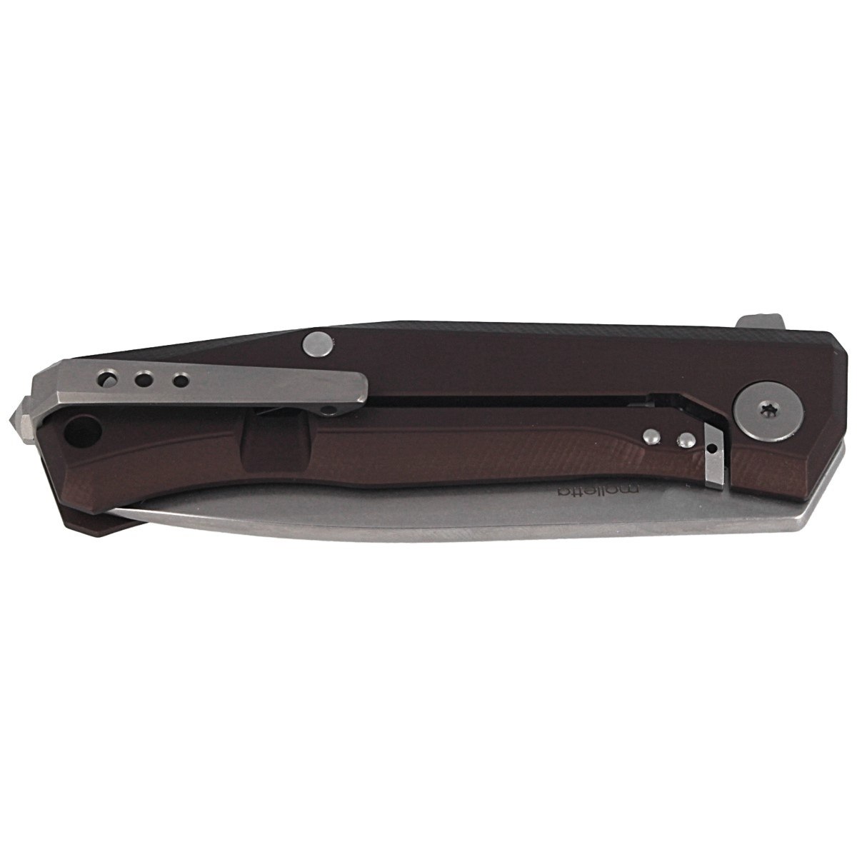 • Myto Earth Brown Aluminium, Stone Washed, high-tech Hi-Tech folder with durable frame-lock. Exceptional EDC knife, M390 steel blade, ReF fin on the underside of the blade, Double Crown ball bearing system, titanium clip.