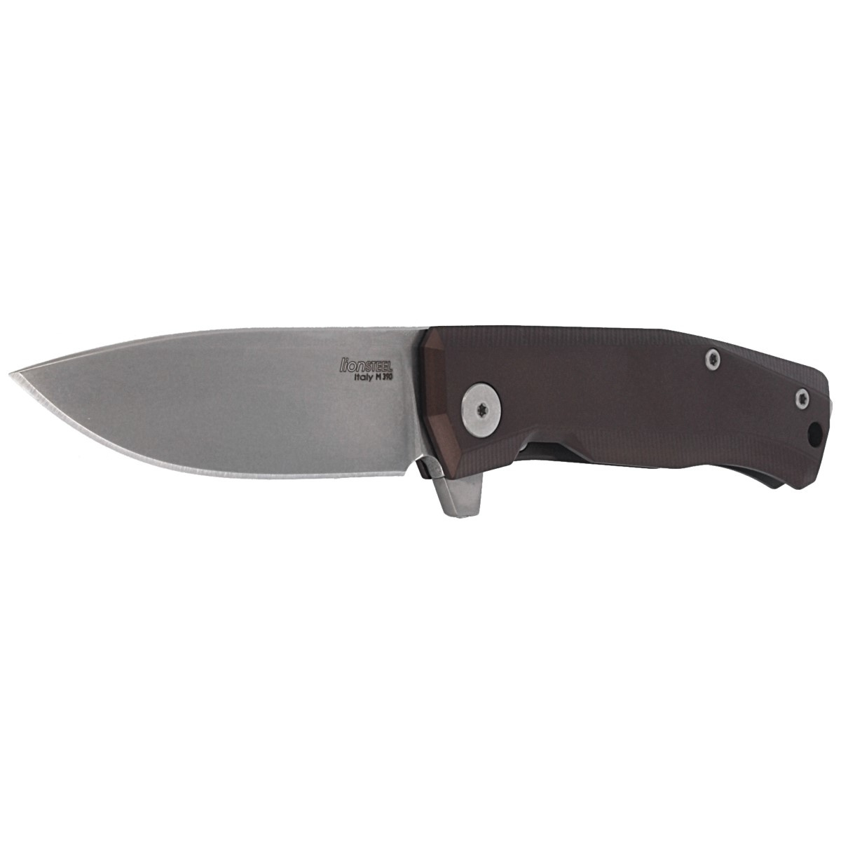 Myto Earth Brown Aluminum, Stone Washed high-tech Hi-Tech folder with durable frame-lock. An exceptional E.D.C. knife by the Italian LionSteel manufactory. Features a M390 powder steel blade, "ReF" fin on the underside of the blade, Double Crown ball bearing system and titanium clip. Torx T6, Torx 8 adjustment wrench included.