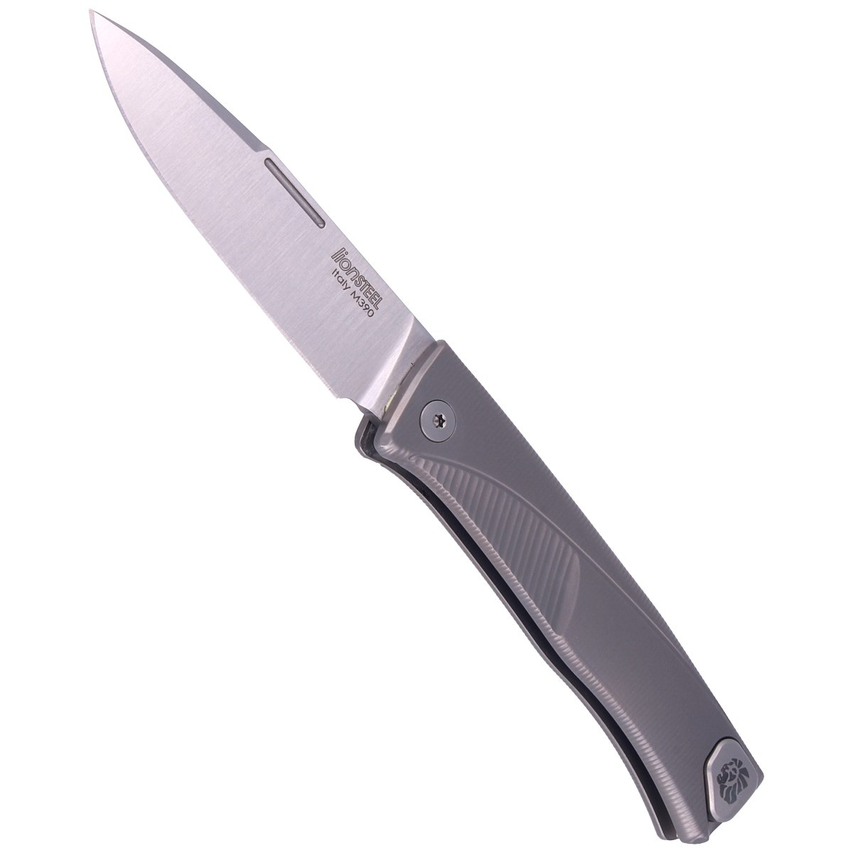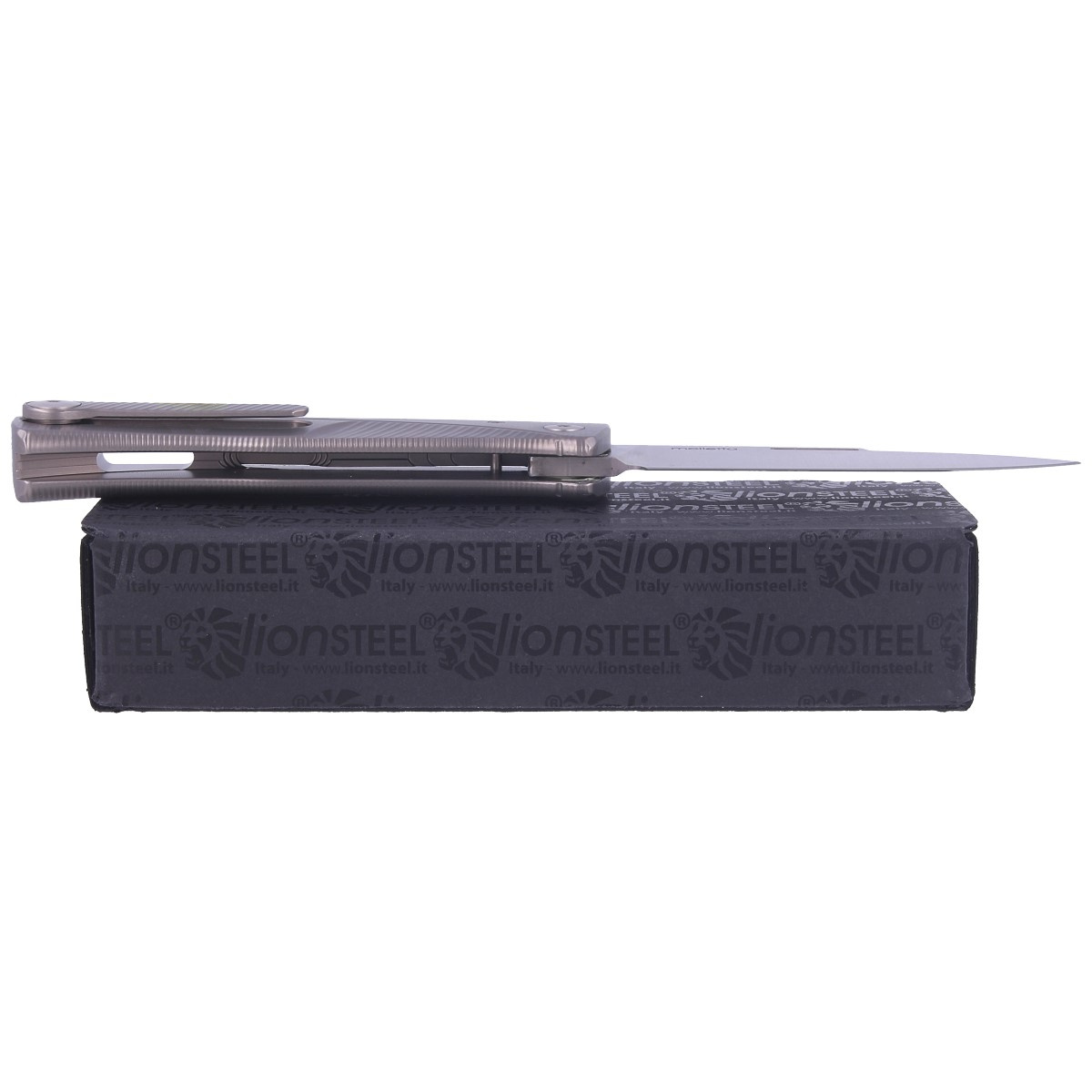 - Thrill Grey Titanium, Satin M390 folder of the LionSteel manufactory with Solid® technology. Proof of the high development of know-how in knife production. The perfect tool for cutting jobs with the Slip Joint mechanism which is legal in most countries.