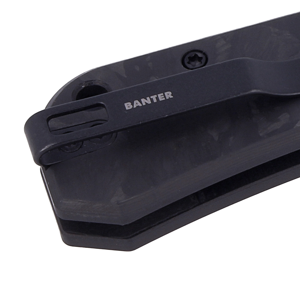 Banter Marble Carbon Fiber, Black Stonewashed folder E.D.C. designed by American traveler and knifemaker Ben Petersen. Spending most of his time away from home, Ben has a particular interest in knives with blades under 3". Lightweight, compact folders that don't weigh down your pocket, ideal for everyday carry.