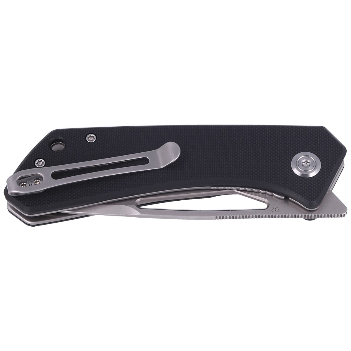 Thalia Black G10, Beadblasted is a versatile folder designed for everyday use. Drop point blade made of excellent D2 tool steel, long-lasting sharpness and damage. The Front Flipper opening mechanism and the hole in the clod allow for quick, smooth unfolding of the blade with one hand. The handle made of durable G10 composite offers excellent grip in all conditions. The ergonomic design ensures a secure grip. Sturdy construction, high-precision manufacturing and reliability in daily use.
