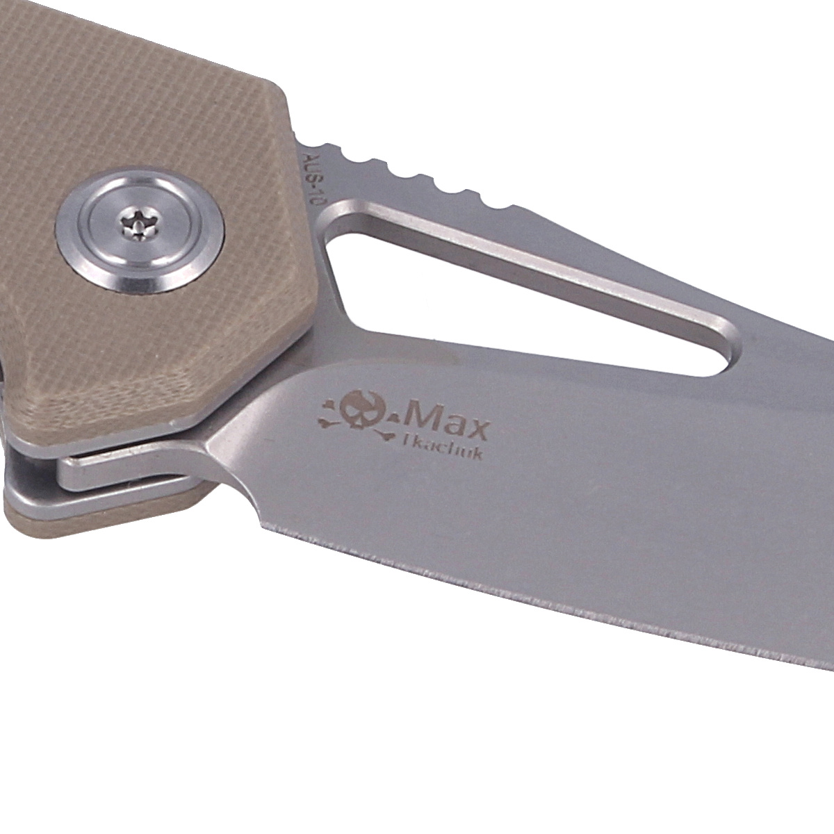 New Vagrant Tan G10, Sandblast AUS-10 lightweight, compact EDC knife. A sheepfoot head made of AUS-10 steel, quick opening with a hole in the blade and a G10 handle. Excellent value for money! Bestseller!