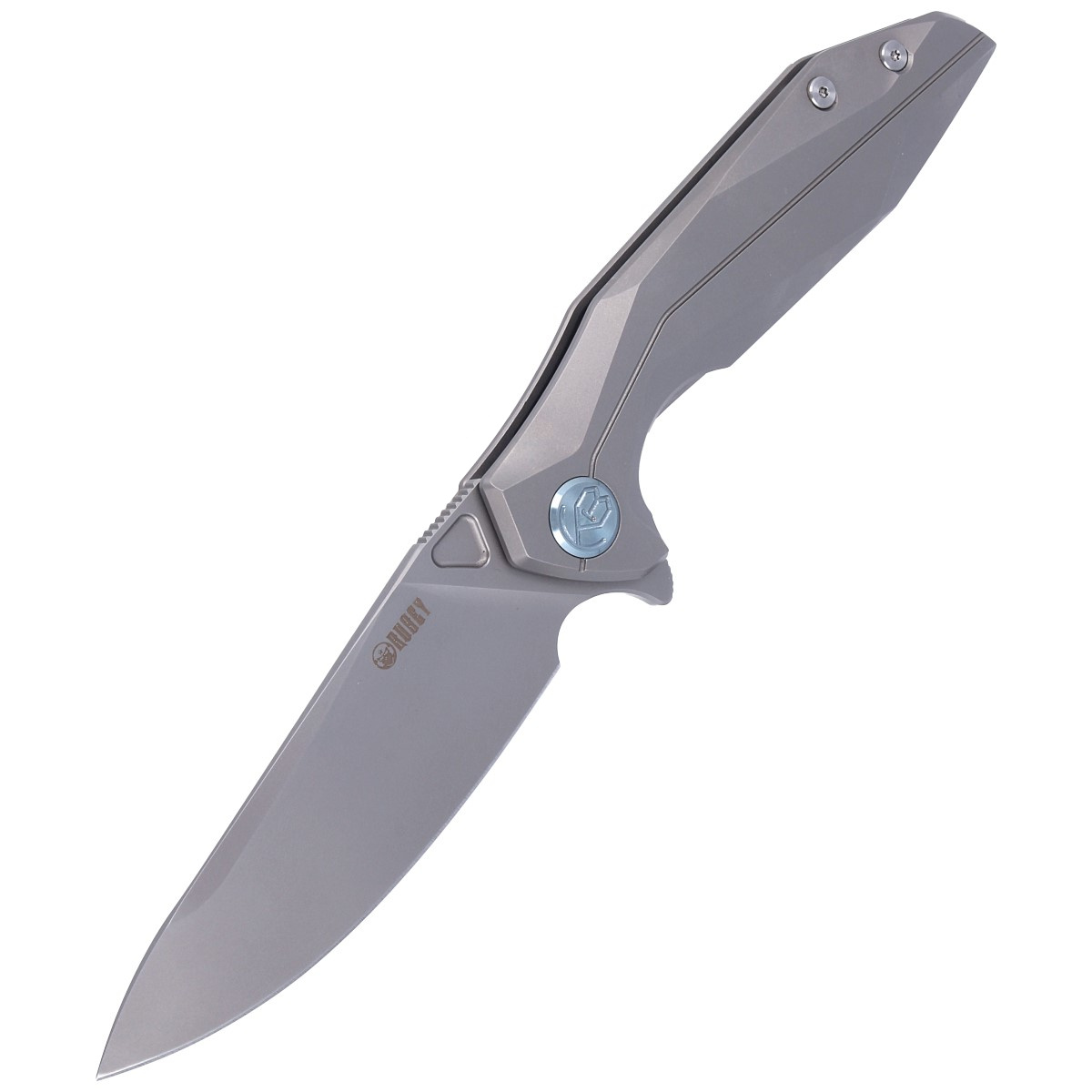 Handle - is two pieces of solid titanium 6AL4V with a slightly rough texture. Chamfered edges of the covers eliminate sharp edges for comfort and improve grip security. The open-backed design, so called, fastened together with steel spacer sleeves, reduces weight and facilitates cleaning. The simple, sturdy design provides assurance of years of use. Deep finger undercut (fore finger groove) improves grip security. The pivot axis is decorated with a stylized Kubey Knife brand logo. A single-position (right) titanium deep-carry clip allows you to carry the knife discreetly in your pocket in tip-up (blade tip up) position.