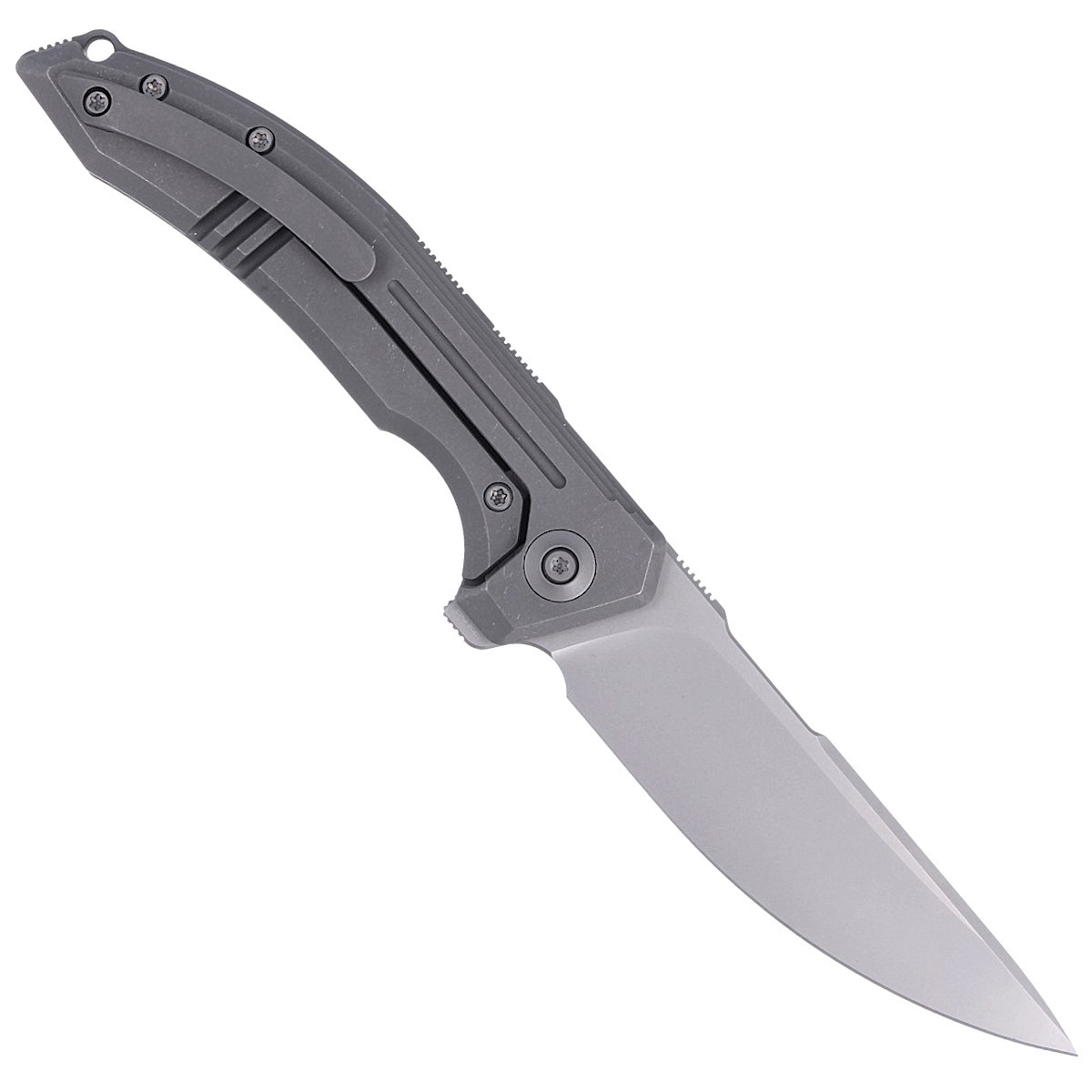- Quixotic Gray Ti, Silver Bead Blasted top quality EDC knife. Aggressive Drop Point head of CPM 20CV steel. Quick Flipper opening, titanium facings, ceramic bearings. Bestseller!