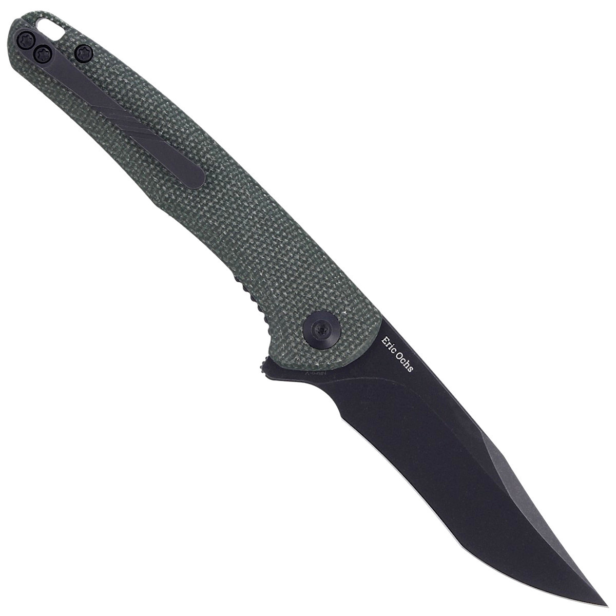 - Mini Sandbar Green Micarta, Black Stonewashed, design by renowned American knifemaker, Eric Ochs. Sleek, disappears in your pocket, with a utility blade. Ergonomic handle makes it easy to hold the knife both ways. Bestseller!