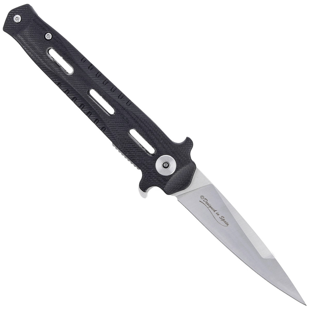 - Tactical Black G10, Satin Finish tactical folding knife from Spanish company Martinez Albainox. G10 handle, blade with a single-sided blade. Double guard prevents the hand from slipping on the blade. Bestseller!