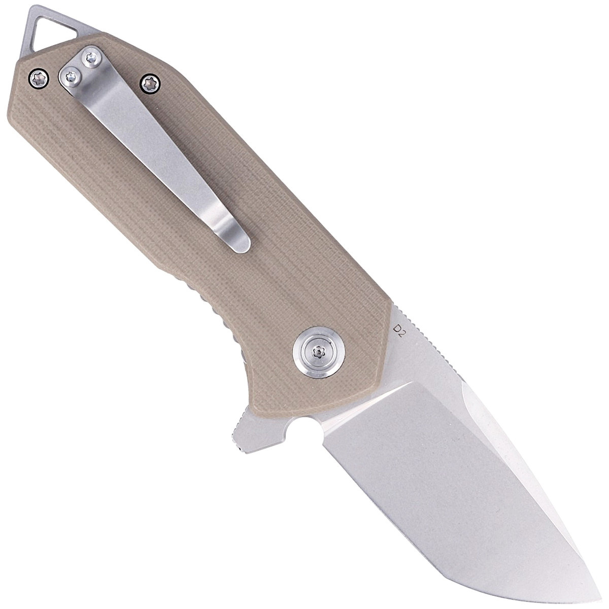 - Campe Khaki G10, Bead Blasted is a compact EDC folding knife with a D2 steel blade, offering good wear resistance and long-lasting edge retention. The flipper enables quick one-handed opening, while G10 handle scales provide a stable and secure grip.