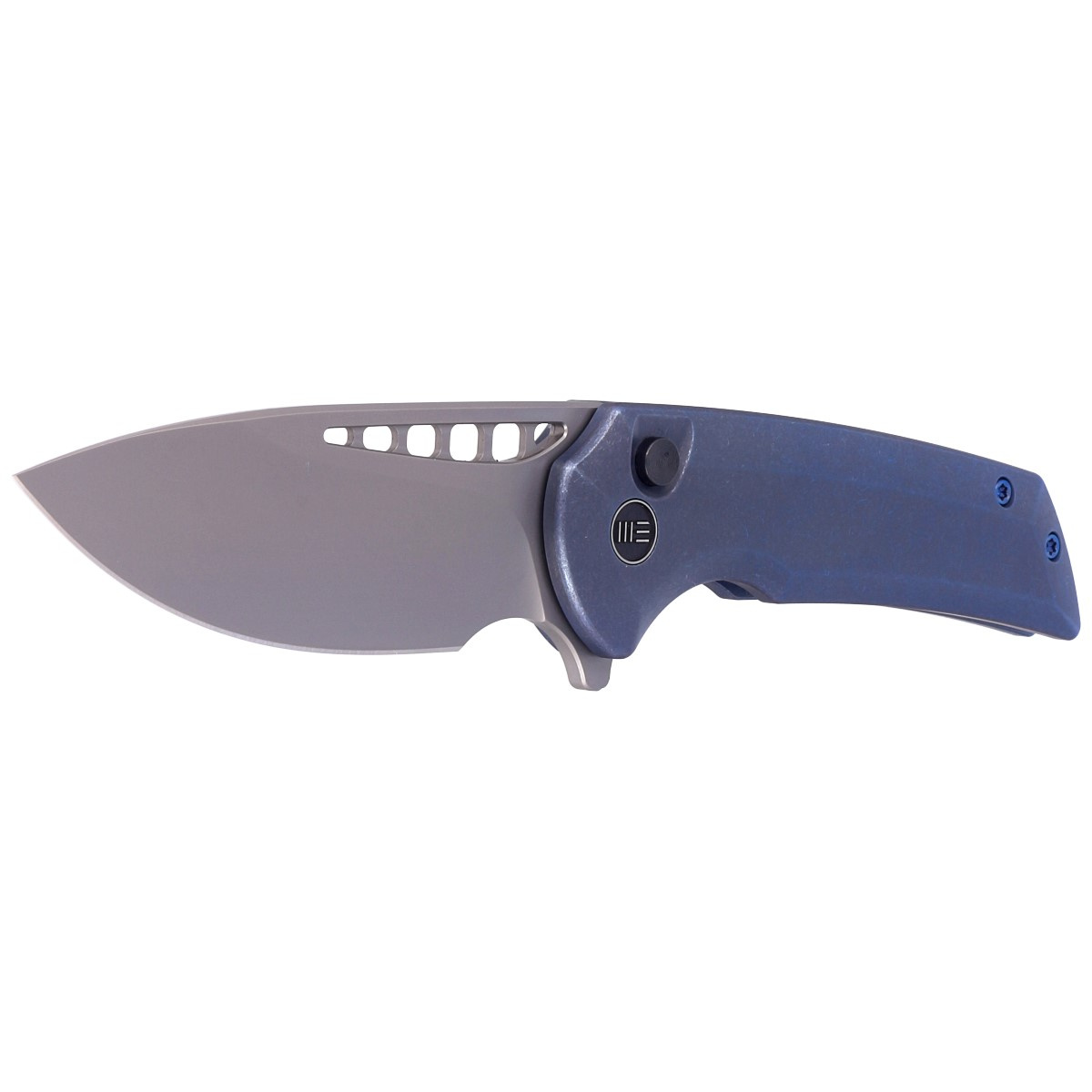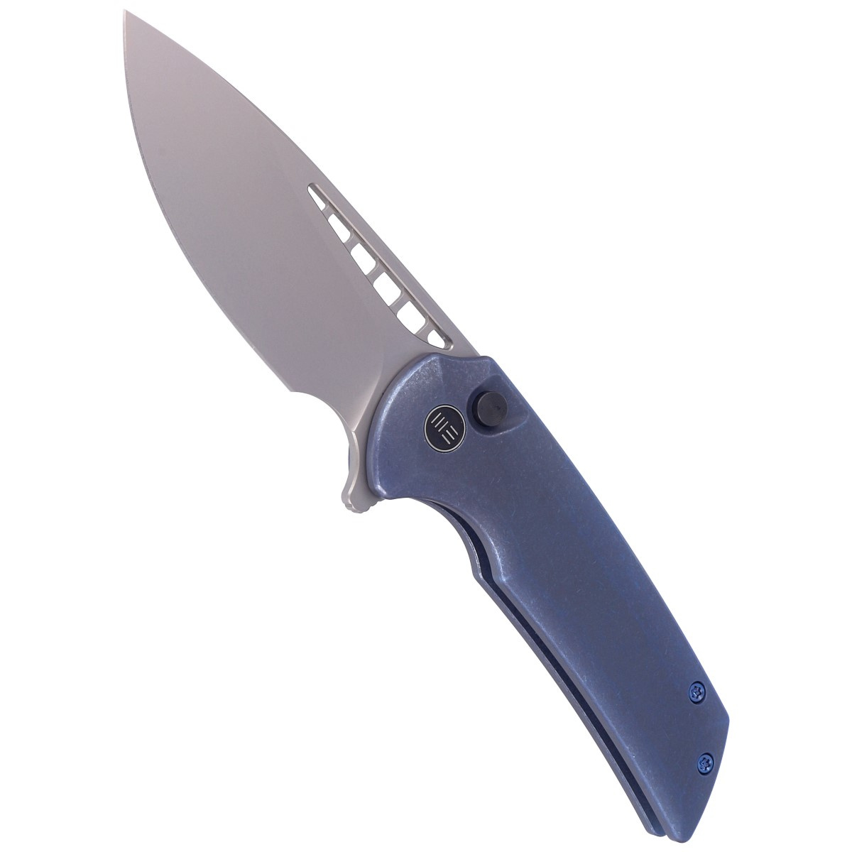 Mini Malice Blue Titanium, Silver Bead Blasted fruit of a collaboration WeKnife with Ferrum Forge Knife Works. An easy-to-carry, compact EDC knife with a durable, wide blade designed for heavy use. Bestseller!!!