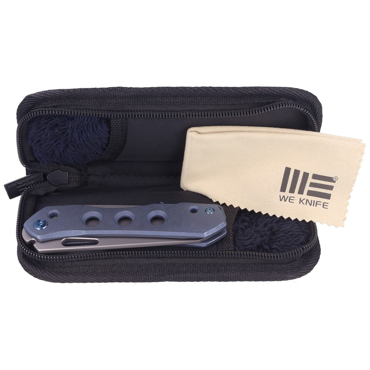 WE Knife Vision R Blue Titanium, Silver Bead Blasted CPM 20CV by Snecx Tan (WE21031-3)