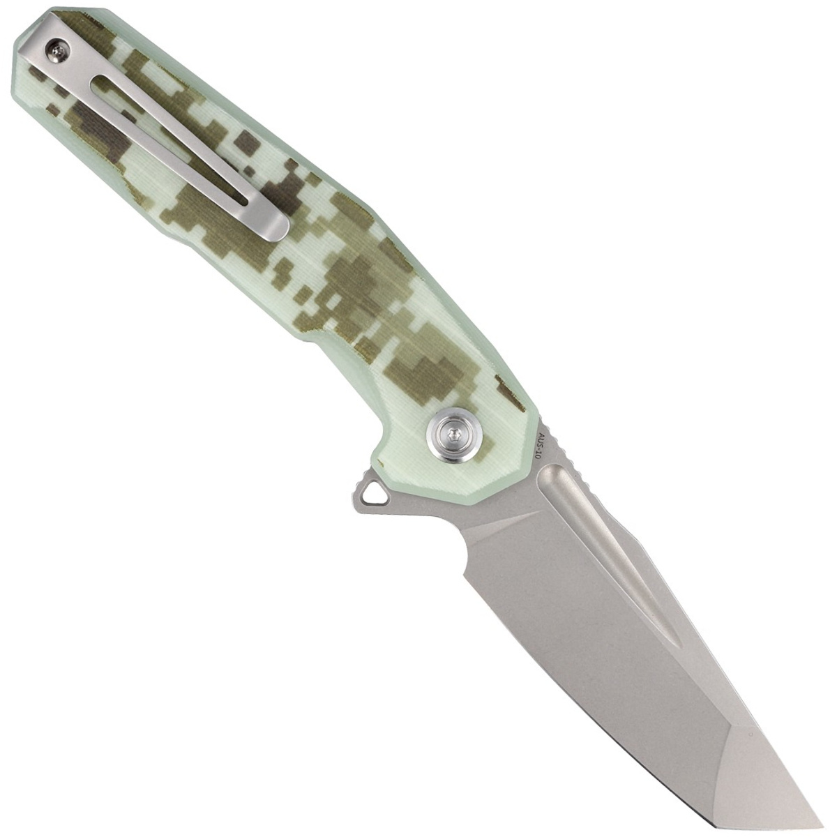 - Carve Digital Camo G10, Bead Blasted – a solid folder in a tactical style. Tanto blade made of AUS-10 steel, pivot with ball bearing, fast opening with a Flipper. Scales in pixelated military digital camouflage. Kubey-quality craftsmanship. Bestseller!
