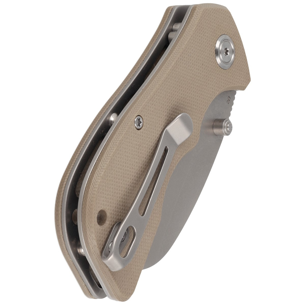Karaji Tan G10, Bead Blasted, compact EDC folder, small in size, yet built like a tank! D2 blade tool steel, rugged G10 plastic on the Handle, a tool you can always carry with you and that won't disappoint! Bestseller!