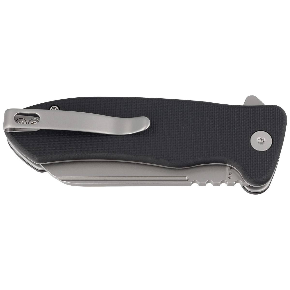 Creon Black G10, Beadblasted, compact EDC folder, combining robustness with practicality. Blade made of Japanese stainless steel AUS-10, known for its excellent corrosion resistance and ease of sharpening. The handle is made of durable G10 composite, ensuring a firm grip even in difficult conditions. The intuitive button lock mechanism allows for safe and easy one-handed operation. Thanks to its strong construction and low weight, Creon is ideal for everyday use, offering reliability and functionality in any situation.