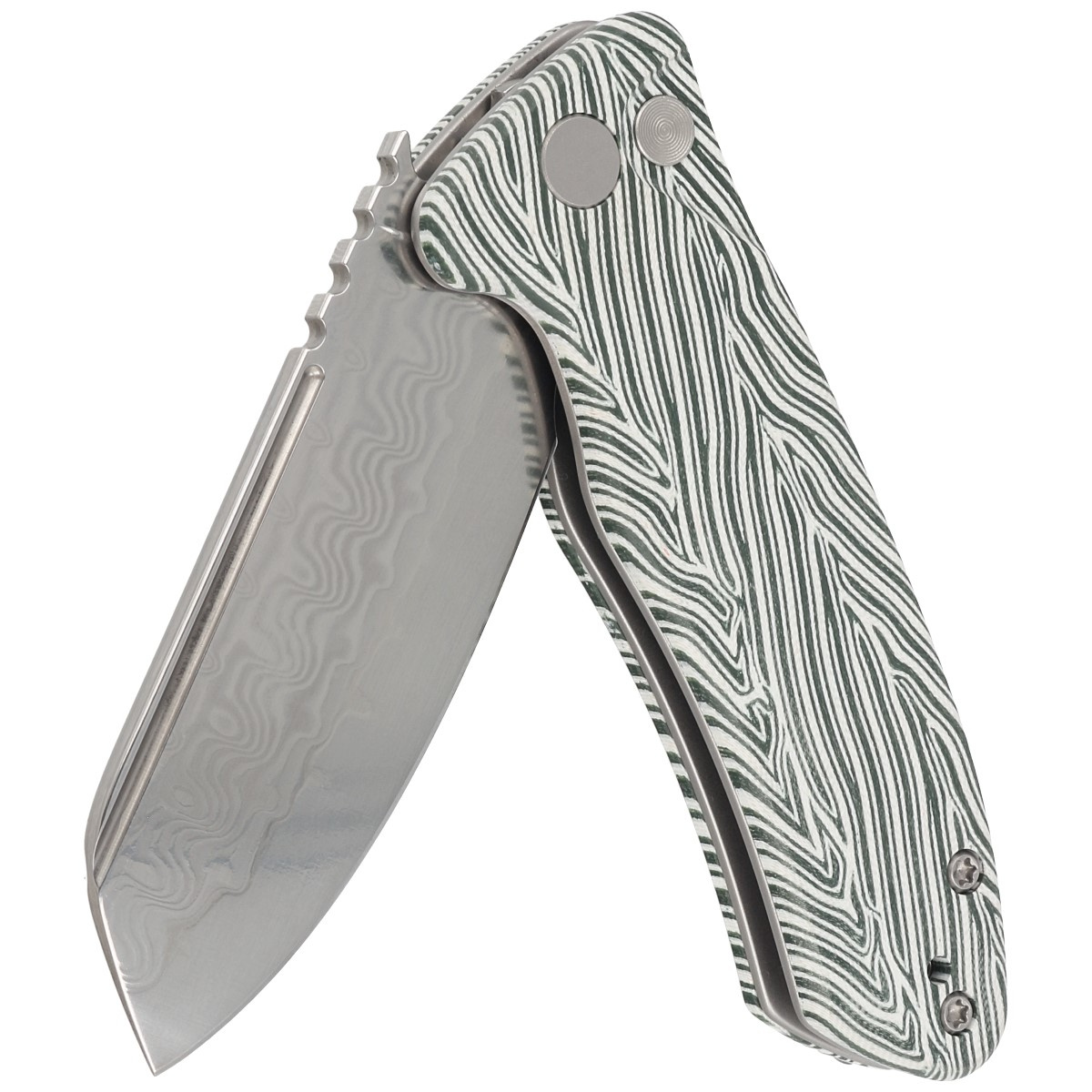 Kubey Creon Knife White/Green G10, Damascus (KU336A)