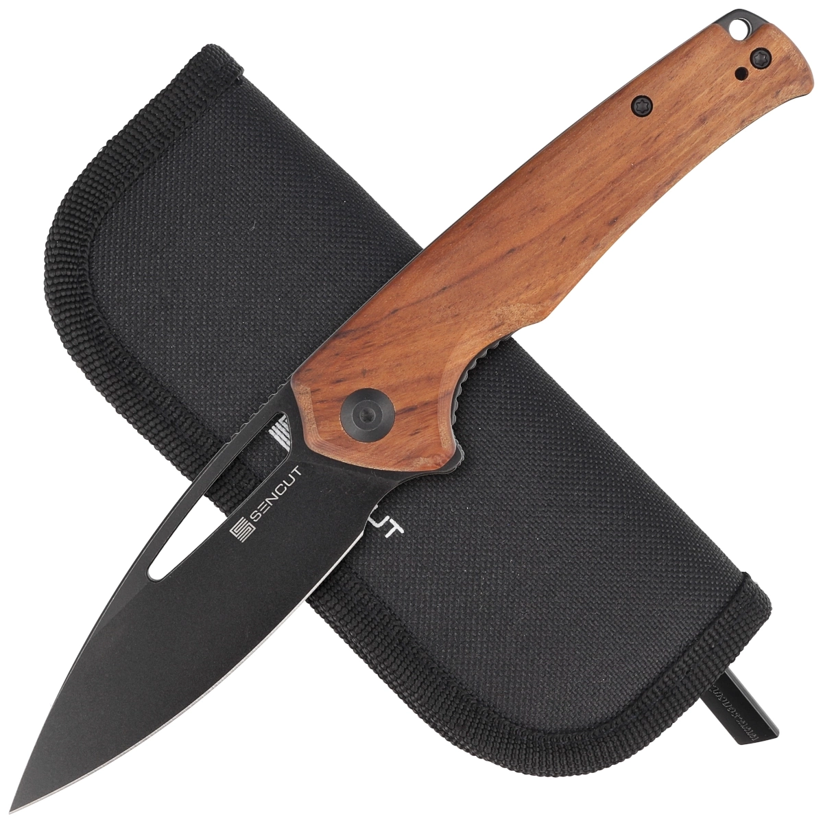 Sencut Mims Guibourtia Wood, Black Stonewashed 9Cr18MoVS knife (S21013-4)