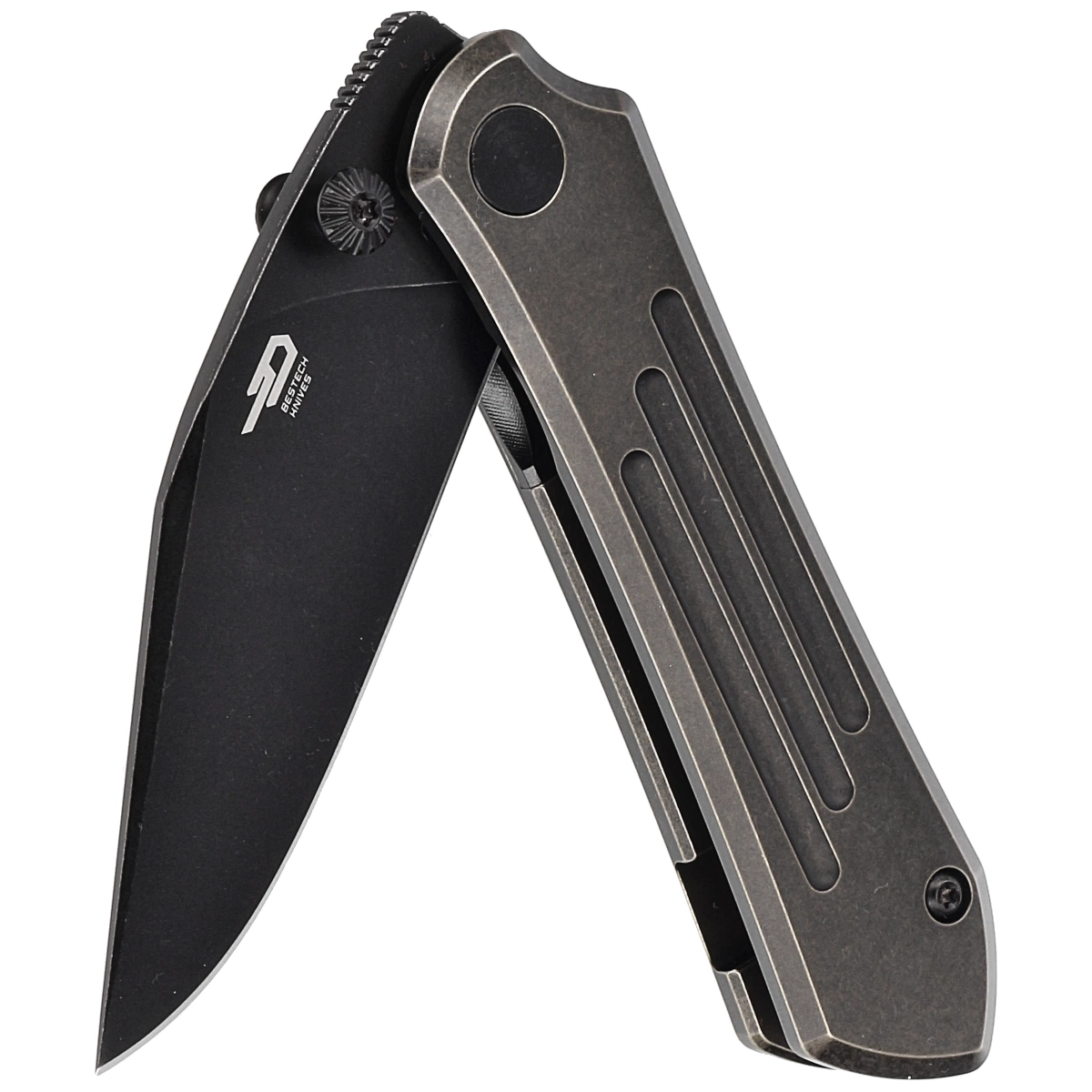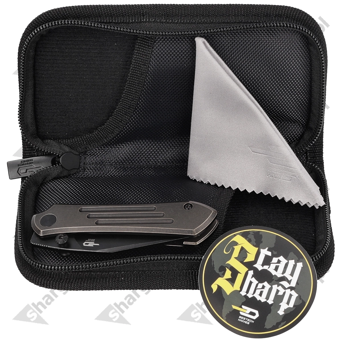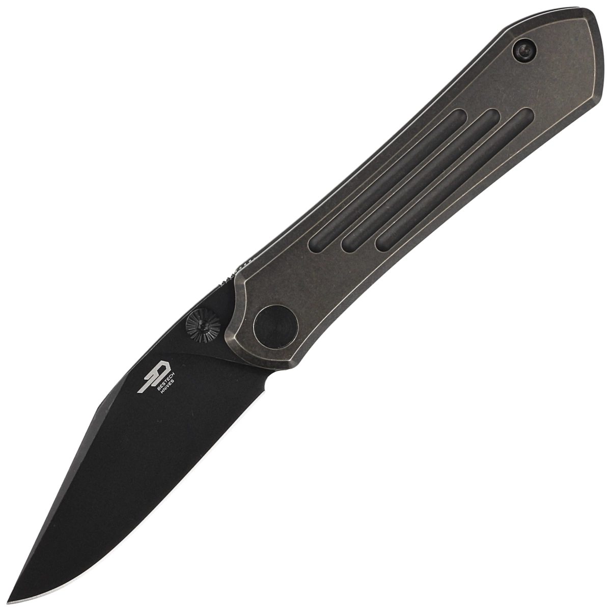Icarus Black Bronze Stonewashed Titanium, Black Stonewashed is the top of the line among folding knives produced by Bestech. Designed by Nick Rogers a young knifemaker from the USA, made with uncompromising quality by Bestech. Nick designs his knives as total cutting tools and the whole design is subordinated to that. When you add one of the world's best M390 tool steels, the result is one hell of an EDC knife!