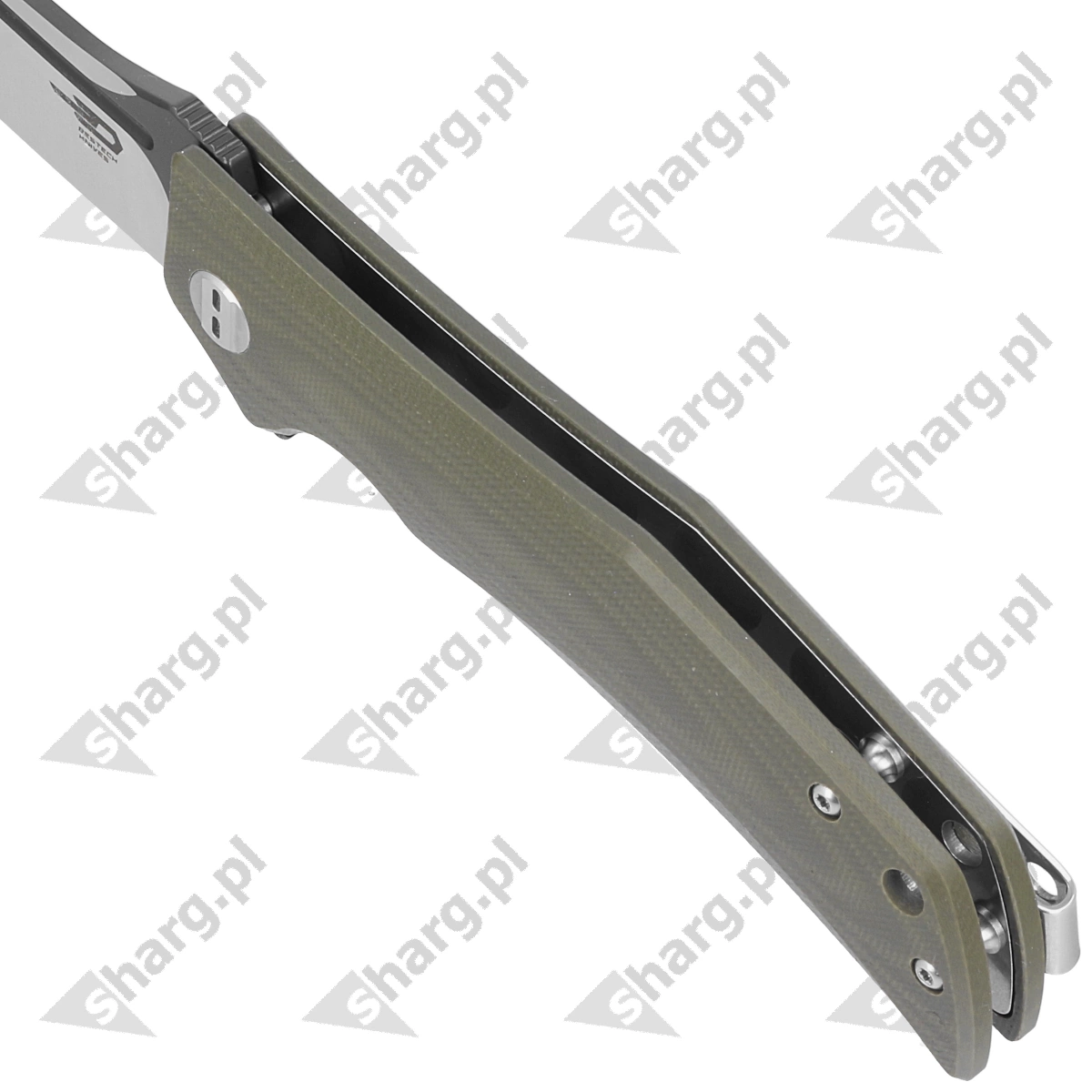 Scimitar Olive G10, Gray / Satin handy EDC folder with a slightly exotic look. Made with characteristic Bestech care. On the Handle grips made of G10, Blade made of proven D2 tool steel, and all this at an excellent price!