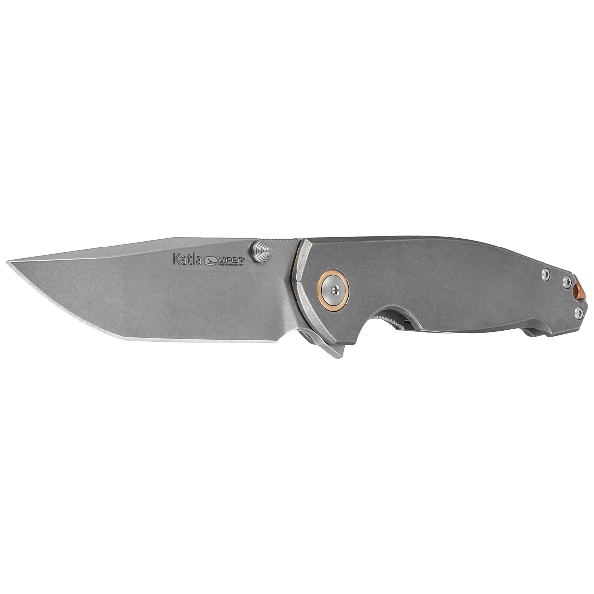 - Katla Gray Titanium, Stonewashed a unique knife aimed at discerning consumers, combines elegant style with the finest materials. The design by Jesper Voxnaes combines 2 options for opening the blade, a deep clip, legendary quality of the Viper