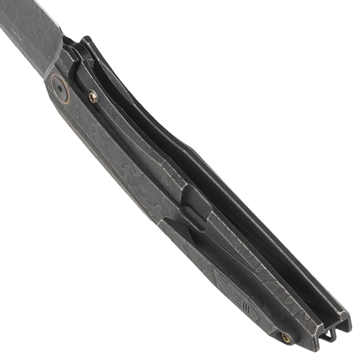 Cybernetic Black Etching Pattern Titanium, Black Stonewashed. Limited edition limited to 205 pieces of the elegant EDC folding knife numbered 201. Traditionally perfect craftsmanship, black stonewashed titanium Handle, Blade in superb CPM 20CV steel, new Etching Pattern surface finish. The perfect everyday helper!