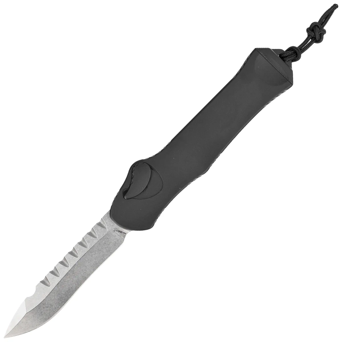 Hydra R/E Black Anodized Aluminium, Stonewshed MagnaCut one of the best OTF (Out The Front) automatic knives. It features the excellent fit and finish you would expect from a top of the range knife. The over-the-top automatic operates in S/A (Single Action) mode using a knife-opening mechanism that works with tremendous force and power. Designed by Anthony Marfione Jr. owner of Heretic Knives.
