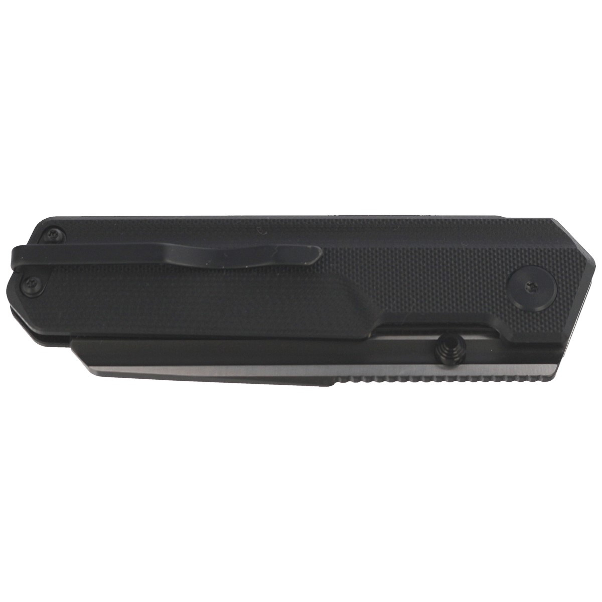 Handle - made of G10 composite (pressure-pressed fiberglass with synthetic resin) with a thick and rough texture. Chamfered edges of the covers eliminate sharp edges for comfort and improve grip security. Open-backed design fixed with steel spacer sleeves reduces weight and facilitates cleaning. A single-sided (right) clip allows the knife to be carried in tip-up position, with the tip of the blade upward.