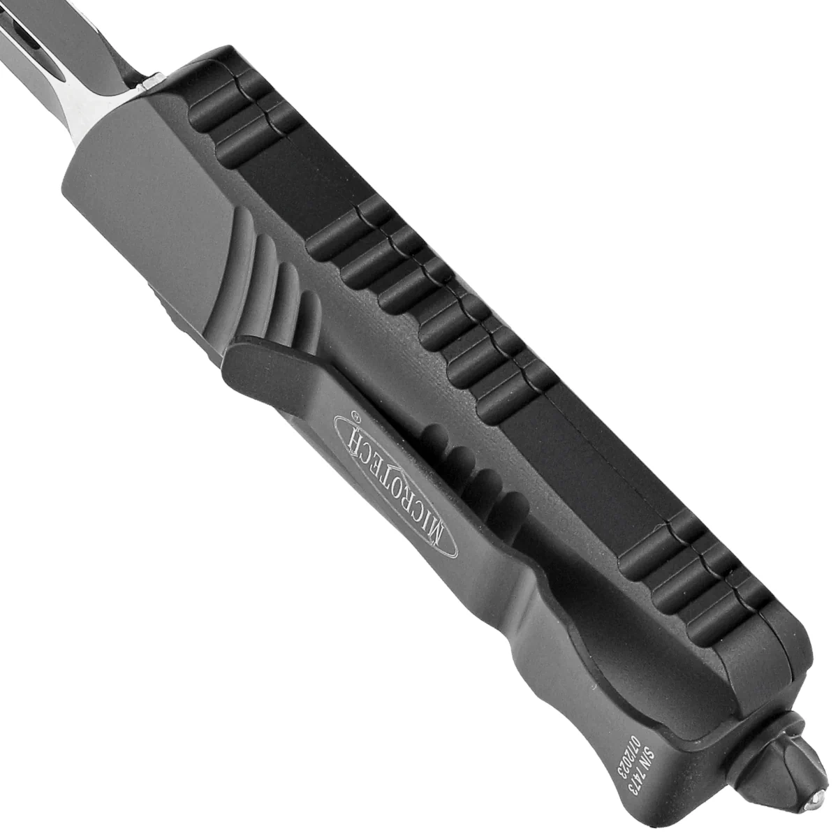 Handle - made with excellent precision in 3D technology on CNC milling machines, from black anodized 6061-T6 aluminum. The surface texture of the Handle and the deep notches (jimping) on it make the knife non-slip in the hand during use. The slim profile and the milled two-position (right/left) solid deep-carry clip allow the knife to be carried discreetly in the pocket, in tip-down (blade tip down) position. The clip bears the Microtech logo, serial number and production date. The Handle is finished with a glass breaker, a solid steel triangle, into which a tungsten carbide ball has been pressed. It also features a hole for interweaving a decorative cord.