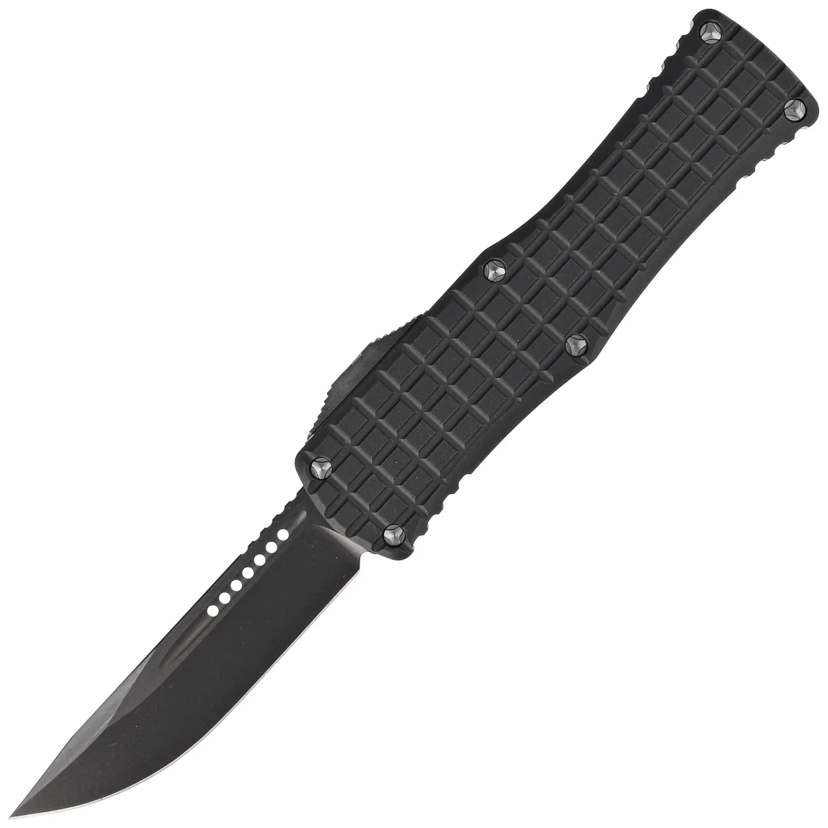 Blade - machine ground S/E (Single Edge Drop Point) type, coated with black DLC coating. The blade was derived with a high flat grind (Flat Grind), providing excellent cutting properties. The grain with a series of holes strengthens the blade. This gives the knife excellent piercing properties while maintaining its strength. The strong mechanism of extending/retracting the blade with the help of the moled Thumb Slide, a stepped thumb slide, requires for safety the application of a specific force to overcome the resistance of the spring. The method of opening provides seamless opening for both right and left-handed people.