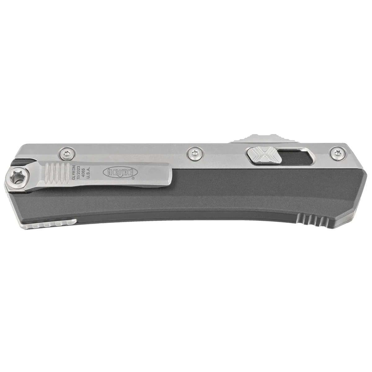 Handle - made with excellent precision in 3D technology on CNC milling machines, the lower part made of black anodized 6061-T6 aluminium, the upper part made of sandblasted titanium. The surface texture of the Handle makes the knife non-slip in the hand during use. There are notches (jimping) on the back and bottom of the handle for a more secure grip. The ergonomic profile and the milled two-position (right/left) solid deep-carry clip allow the knife to be carried discreetly in the pocket, in tip-down (blade tip down) position. The clip bears the Microtech logo, serial number and production date.