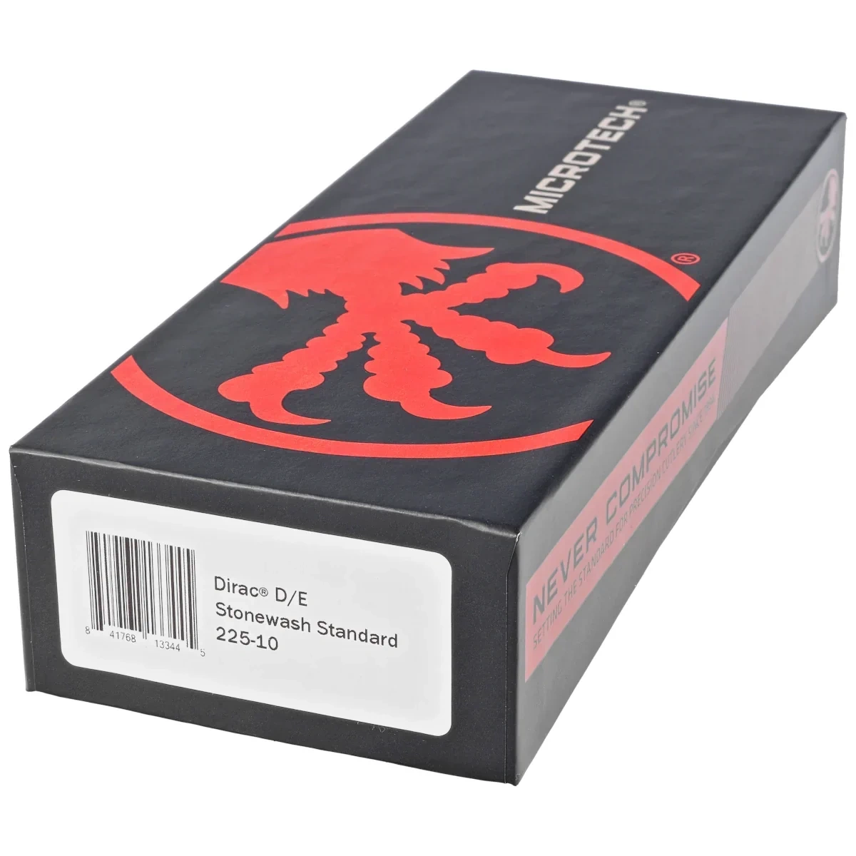 • Dirac D/E Black Aluminum, Stonewashed is a compact OTF automatic knife from the Dirac series. Operating in D/A mode, it features a hell of a fast blade extension mechanism. Slider button on the side of the handle. Designed by Tony Marfione of Microtech